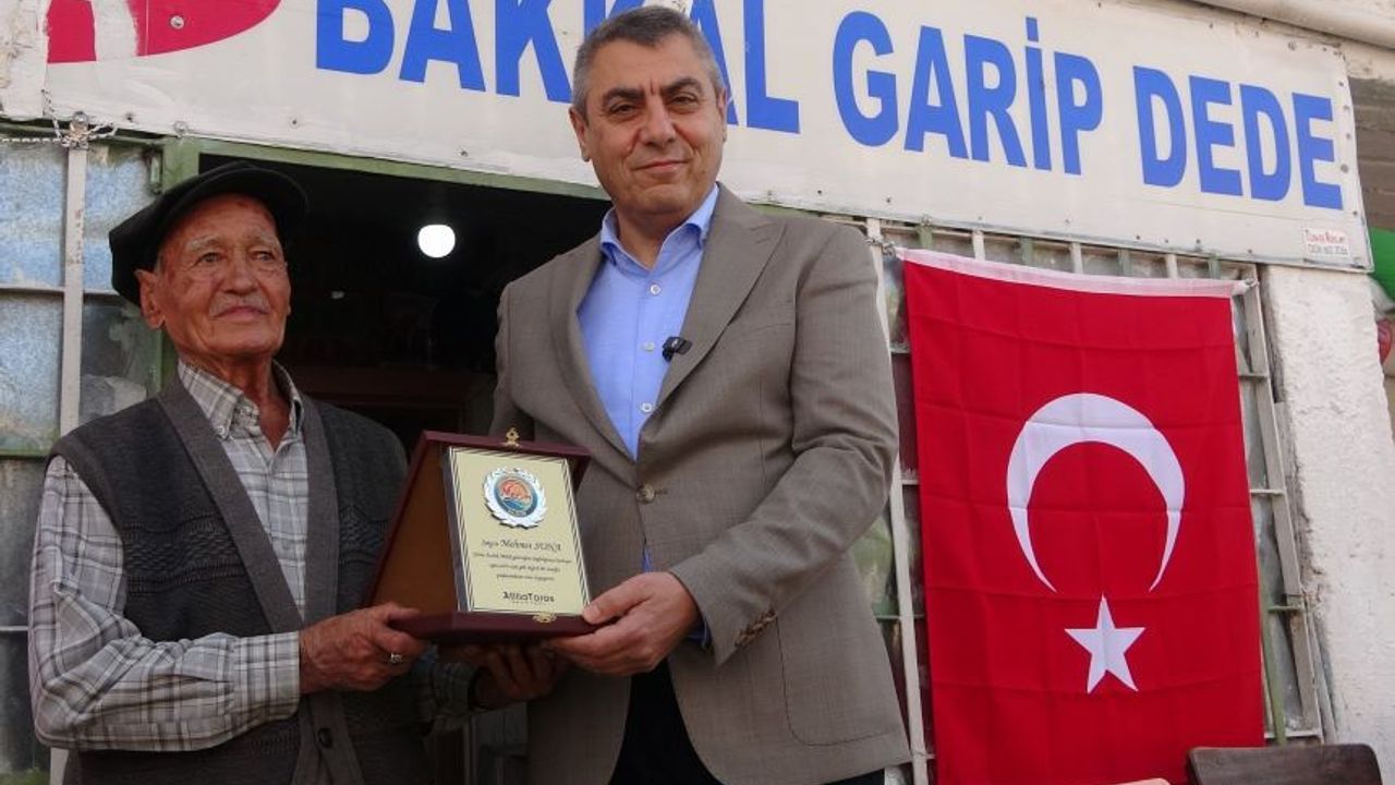 Mehmet amcanın 50 yıldır esnaflık yaptığını öğrendiklerini belirten Vali Atilla Toros," Yarım asır burada esnaflık yapmış. Kendisi çok seviliyor, sayılıyor. Güvenilir bir esnaf olarak biliniyor. Biz de hatıra kalsın diye kendisine bir şilt takdim etmek istedik. Onunla tanışmaktan şeref duyduk. Güvenilir olması, herkes tarafından sevilen bir esnaf olmasından da memnun olduk "diyerek elini öptü.