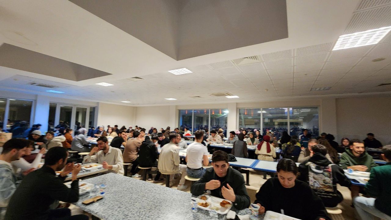 Akdeniz Üniversitesinde Ramazan ayı süresince kurulan iftar sofralarında öğrenciler hem oruçlarını açıyor hem de birlik, beraberlik ve dayanışma ruhunu paylaşıyor. Yoğun katılımın olduğu programda manevi atmosfer ön plana çıkarken, gençlerin bir araya gelmesiyle samimi ve sıcak bir ortam oluşuyor. Her akşam düzenli olarak gerçekleştirilen organizasyon sayesinde özellikle şehir dışında eğitim gören öğrenciler, Ramazan’ın paylaşma ve kaynaşma iklimini üniversite ortamında deneyimleme fırsatı buluyor.
