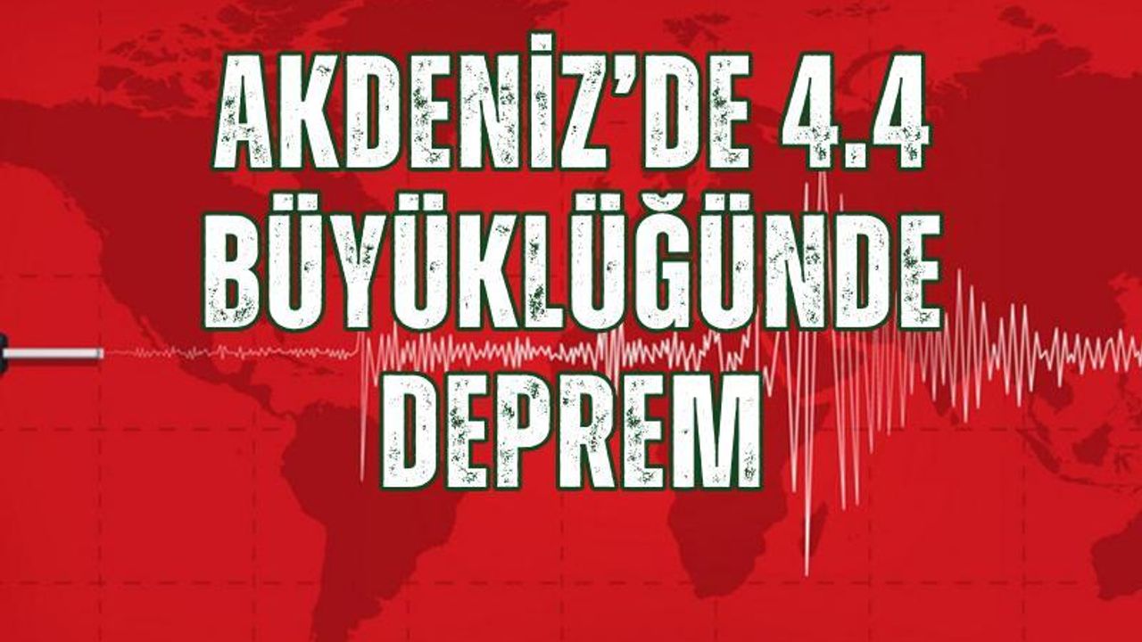 Resmi kaynaklardan elde edilen bilgilere göre Akdeniz’de deprem meydana geldi. İçişleri Bakanlığı Afet ve Acil Durum Yönetimi Başkanlığı (AFAD), bölgede 4.4 büyüklüğünde bir sarsıntı kaydedildiğini duyurdu.