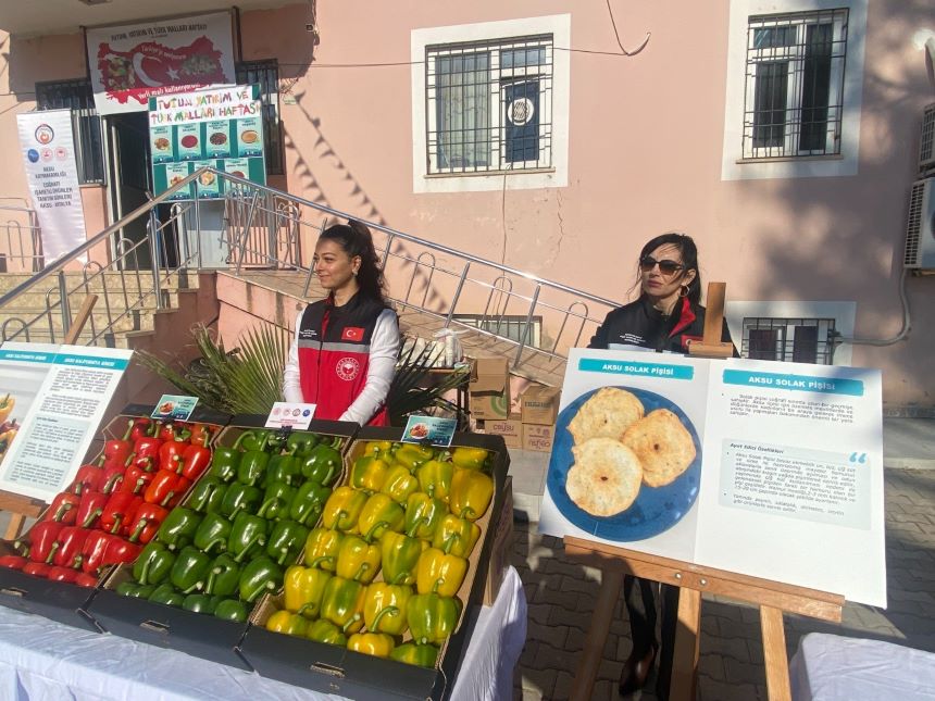Antalya'nın Aksu ilçesinde Yerli Malı Haftası, yerli ve milli üretimin önemine dikkat çekilen kapsamlı bir programla kutlandı. Aksu Kocabelen Okulu bahçesinde düzenlenen etkinlikte, Aksu'nun tarımsal gücü, coğrafi işaretli ürünlerin önemi ve üretimde sürdürülebilirlik vurgulandı. Düzenlenen etkinlikte konuşan Aksu Kaymakamı Ahmet Hikmet Şahin, "Kaymakamlığımızca; keşkek, köfte, solak pişisi, salça, yabani incir reçeli, kaliforniya biberi ve araka yemeği olmak üzere 7 ürün için Türk Patent ve Marka Kurumu'na başvuru yaptık" dedi.