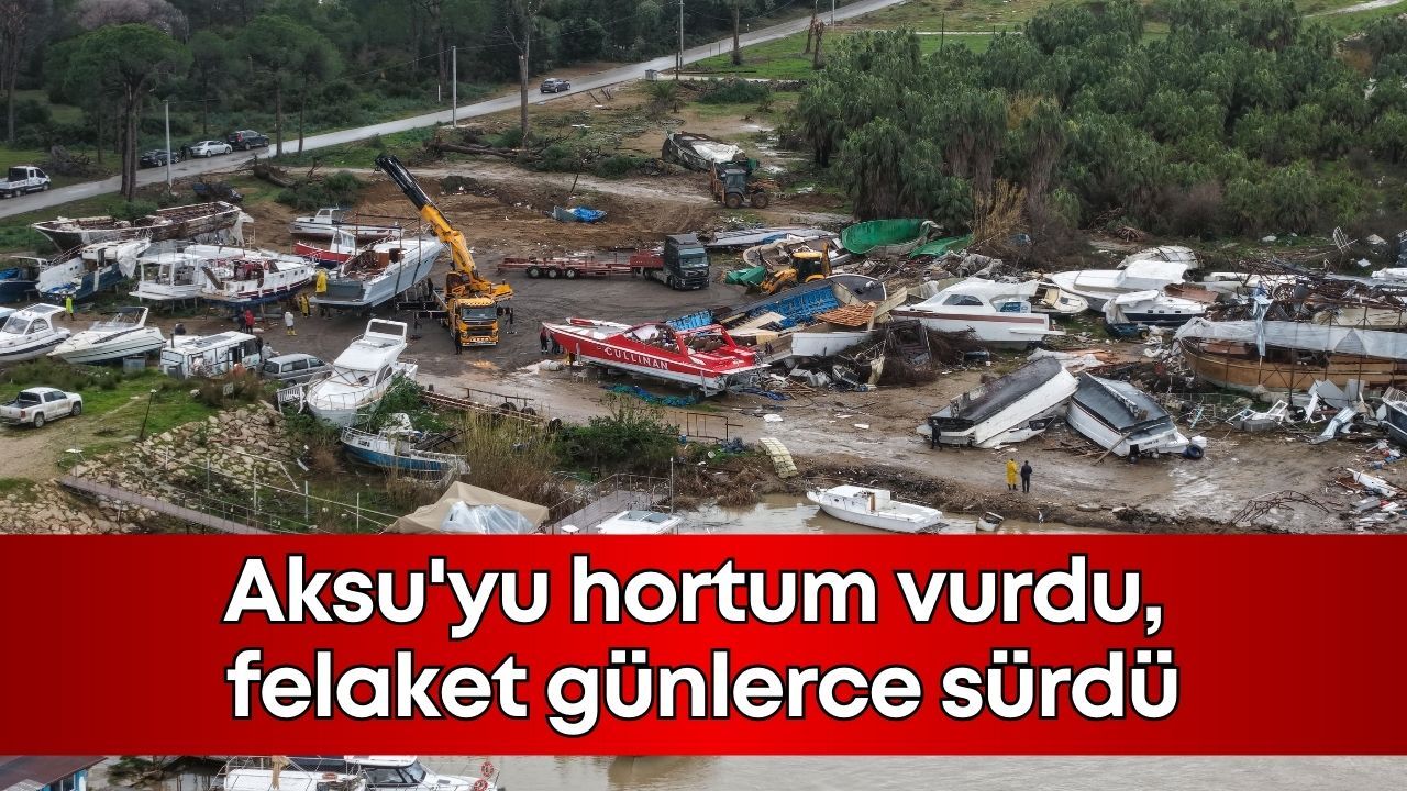 Antalya’da geçen hafta pazartesi gecesi etkili olan şiddetli yağış ve fırtına, hayatı olumsuz etkiledi. Kentin birçok noktasında su baskınları yaşanırken, hortum ve fırtına nedeniyle birçok tarım arazisi zarar gördü. Aksu ilçesinde Aksu Çayı üzerinde gece saatlerinde oluşan hortum büyük hasara yol açtı. Hortumun etkilediği alanda bakım için karaya çekilen tekneler ile kıyıdaki tur ve balıkçı tekneleri zarar gördü. Bazı tekneler devrilip üst üste gelirken, bazıları ise yaklaşık 100 metre sürüklendi.