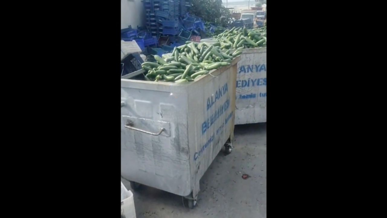 Alanya Payallar Mahallesi'nde çekildiği iddia edilen ve sosyal medyada yayılan görüntüler, tonlarca salatalığın çöpe dökülmesini ortaya koydu. Üreticiler "ürün para etmedi" derken, vatandaşlar israf karşısında tepkilerini dile getirdi.