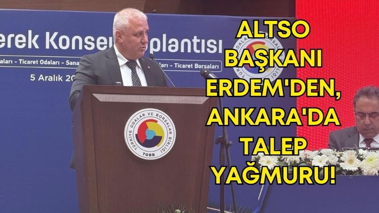 Alanya Ticaret ve Sanayi Odası (ALTSO) Başkanı ve aynı zamanda Türkiye Odalar ve Borsalar Birliği (TOBB) Ticaret ve Sanayi Odaları Konsey Başkan Yardımcısı Eray Erdem, Ankara'da gerçekleştirilen TOBB Müşterek Konsey Toplantısı'nda bölgenin ekonomik sorunlarını ve çözüm önerilerini aktardı. Toplantı, TOBB Başkanı Rifat Hisarcıklıoğlu ev sahipliğinde, Cumhurbaşkanı Yardımcısı Cevdet Yılmaz, bakan yardımcıları, bürokratlar ile oda ve borsa başkanlarının katılımıyla düzenlendi.