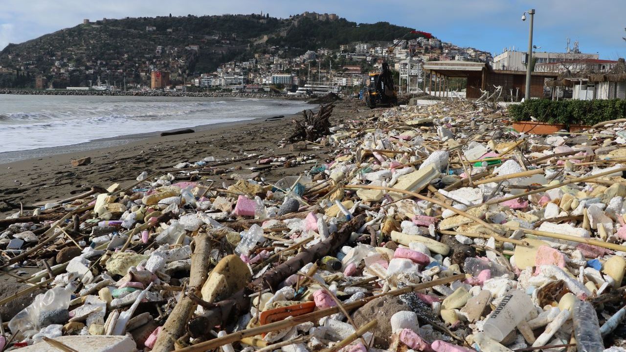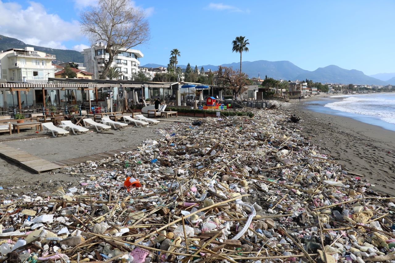 Alanya'da son iki gündür etkili olan şiddetli yağış, yaşamı olumsuz etkilemesinin yanı sıra, çevre alarmını da beraberinde getirdi. Kentin birçok noktasında denizden kıyıya, çöp, odun parçaları, plastikler ve evsel atıklar taşındı. Sabah saatlerinde özellikle Galip Dere Plajı, metrelerce uzanan çöp yığınlarıyla doldu. Atıkların büyük bölümünün derelerle taşındığı, bir kısmının ise deniz dibinde biriken atıkların dev dalgalar nedeniyle karaya vurduğu görüldü.