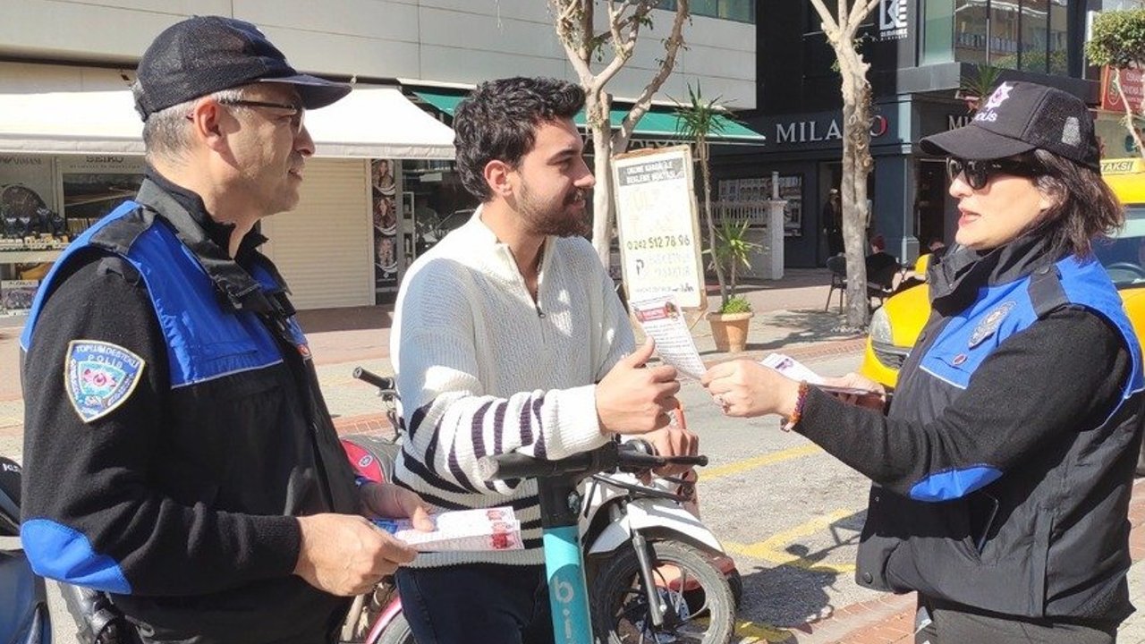 Alanya İlçe Emniyet Müdürlüğü tarafından ‘Trafik Kuralları Hayat Kurtarır’ projesi kapsamında motosiklet, elektrikli scooter ve elektrikli bisiklet sürücülerine yönelik bilgilendirme gerçekleştirildi.