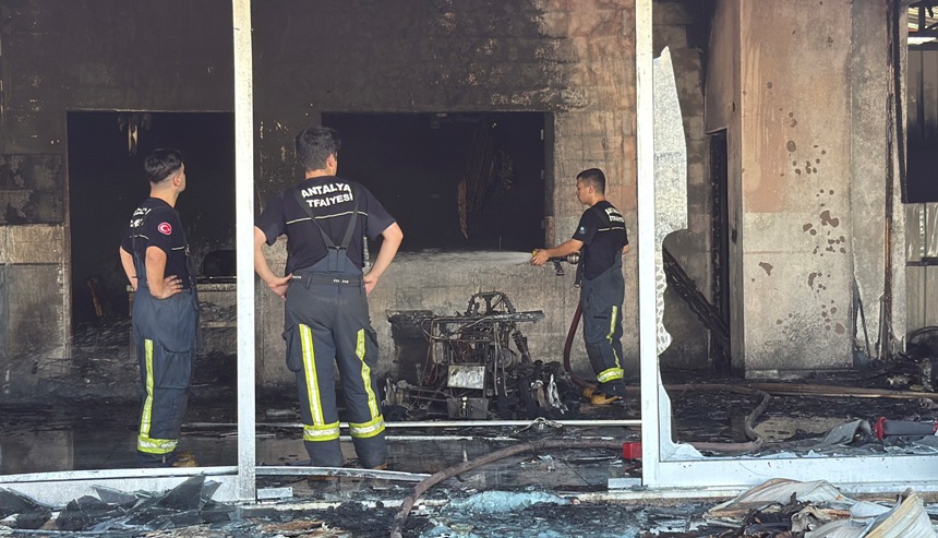 Antalya'nın Alanya ilçesi, Konaklı Mahallesi Mithat Görgün Caddesi'nde bulunan bir motosiklet tamirhanesinde saat 14.00 sıralarında henüz belirlenemeyen bir nedenle yangın çıktı. Kısa sürede büyüyen alevler, iş yerini sararak büyük zarara yol açtı.