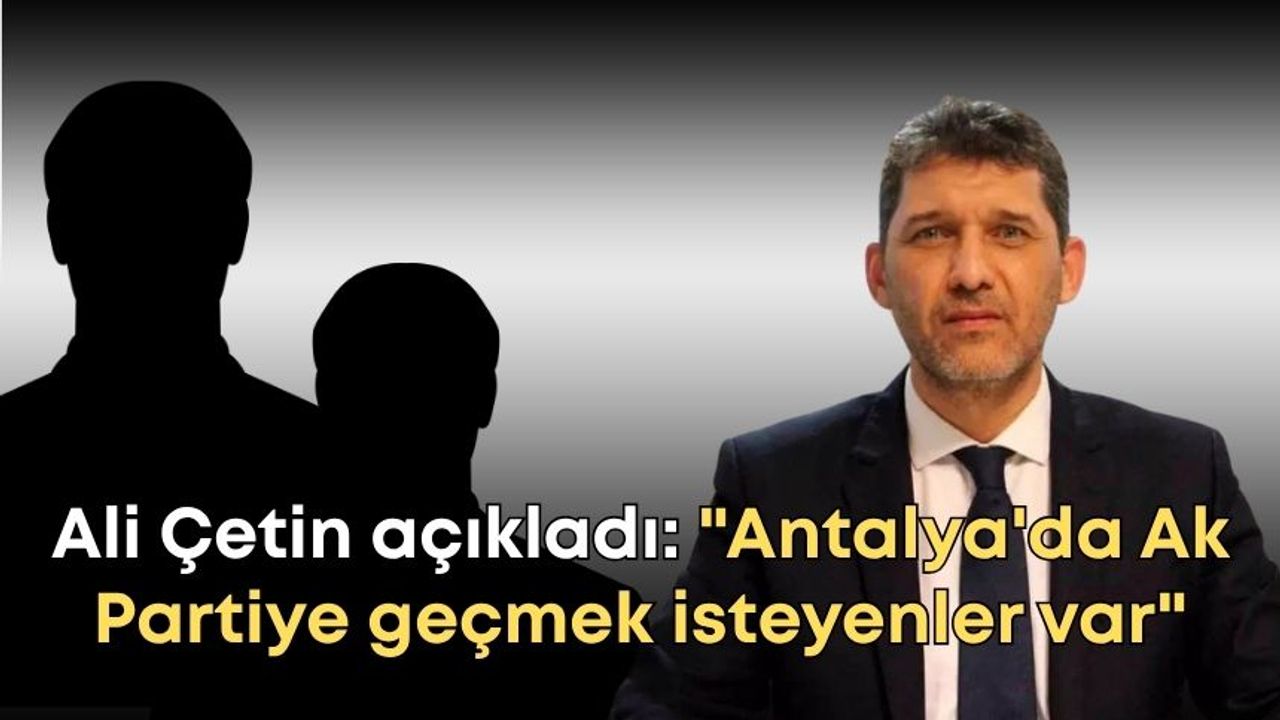Ak Parti Antalya İl Başkanı Ali Çetin, son süreçte kendileriyle görüşen bazı isimlerin Ak Parti’ye geçmek istediklerini ifade etti. Geçişlerle ilgili olarak değerlendirme sürecinin devam ettiğini ifade eden Çetin, “Burada isim vermemiz doğru değil. Fakat bizimle görüşen ve Ak Parti’ye geçmek isteyen isimler var. O isimler günü geldiğinde kamuoyuyla paylaşılacak” diye konuştu. Aksu Belediye Başkanı İsa Yıldırım’ın Ak Parti’ye geçeceği yönündeki iddiaları karşısında sessiz kalan Çetin, görüşülen isimlerin netlik kazanması halinde açıklanacağını hatırlattı.