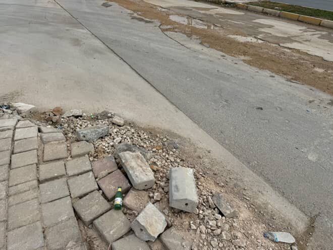 Çalışmalar kapsamında yolun ortası kesilerek asfalt kaldırıldı, ardından kazı işlemleri yapıldı. Gerekli boruların döşenmesinin ardından alanlar ince dolgu kumlarıyla kapatıldı. Çalışmalar sırasında kaldırımların bir bölümü de sökülerek kullanılamaz hale geldi. Ancak altyapı tamamlanmasına karşın üstyapı çalışmaları yapılmadı. Kazılan ve dolgu yapılan alanlarda asfalt kaplama yapılmazken, sökülen kaldırım taşları da yerine konulmadı.