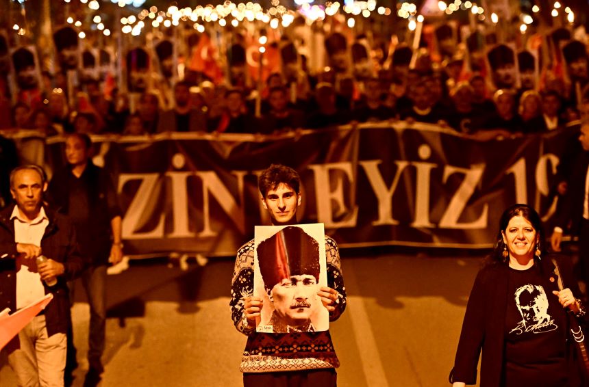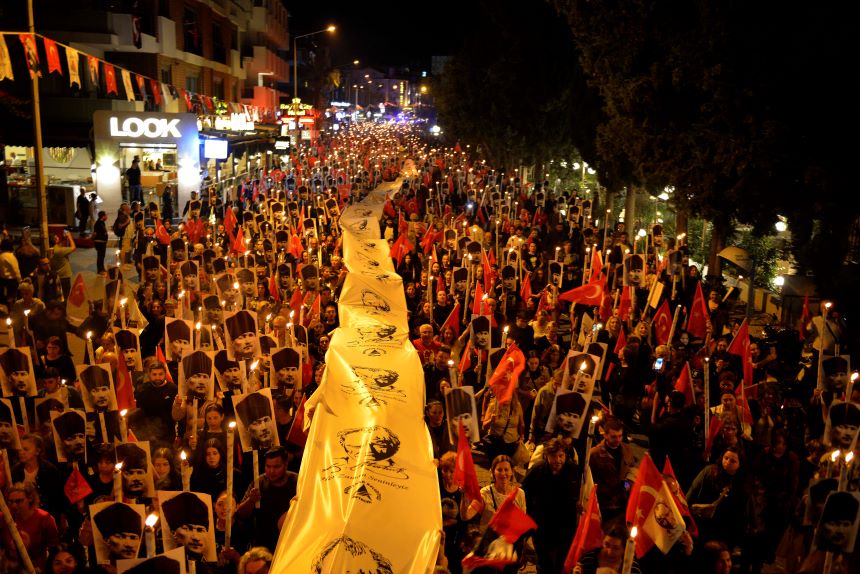 Antalya’da Muratpaşa Belediyesi, Gazi Mustafa Kemal’in ebediyete intikalinin 87’nci yılı anısına ‘Ata’ya Saygı Yürüyüşü’ düzenledi. Binlerce Antalyalı ellerinde meşaleler, Türk bayrakları ve Atatürk posterleriyle Muratpaşa Atatürk Kent Meydanı’ndan başlayan fener alayına katıldı.