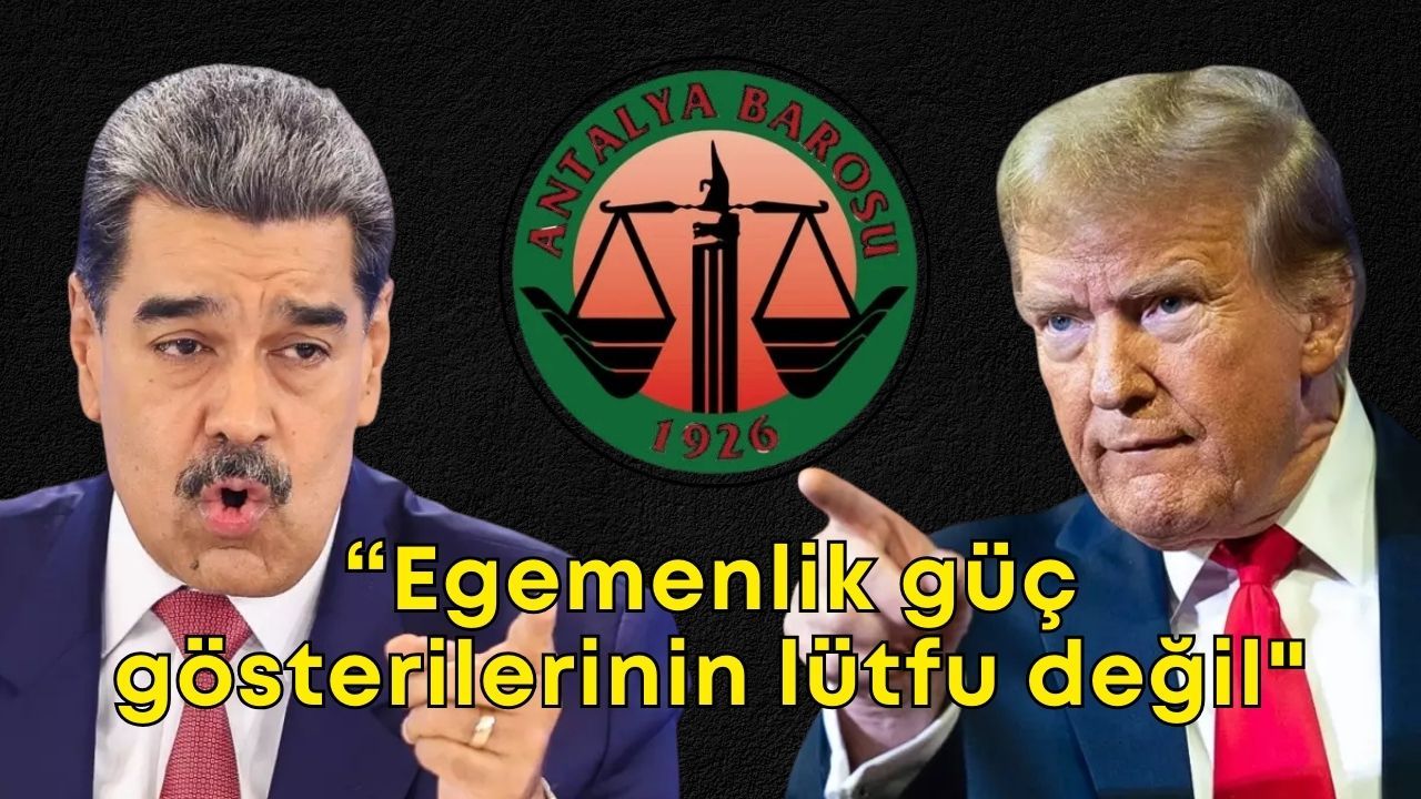 Antalya Barosu, uluslararası topluma Venezuela halkının yanında durma çağrısında bulunarak, “Emperyalizmin istediğini yapamadığı, gücün hukukunun değil; hukukun gücünün hâkim olduğu bir dünya düzeni için tüm devletlerin, kurum ve kuruluşların sesini yükseltmesi gerekmektedir” ifadelerini kullandı.