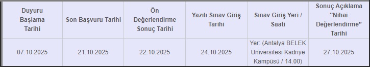 Başvurularla ilgili tüm ayrıntılı bilgilere ve ilan metnine, üniversitenin resmi web sitesi olan [www.belek.edu.tr](http://www.belek.edu.tr) adresinden ulaşılabiliyor.