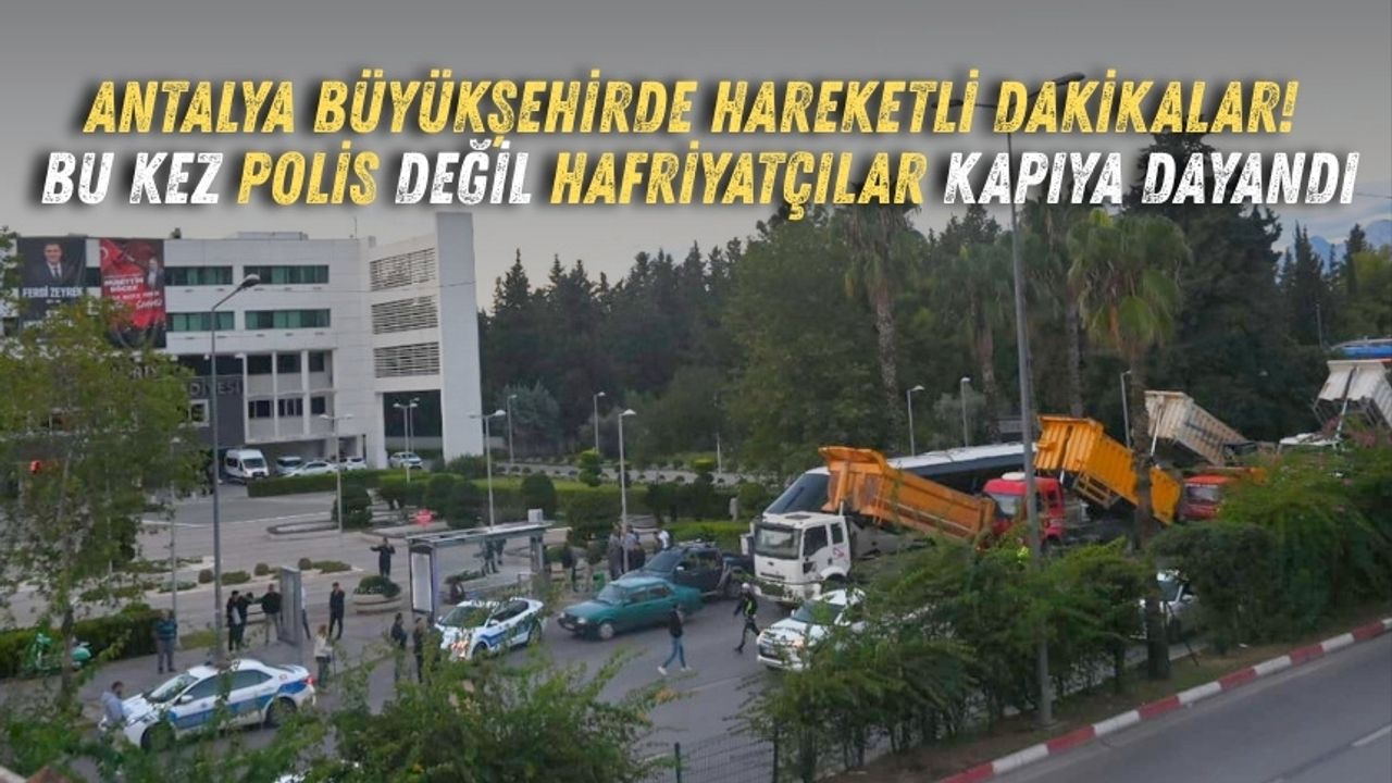 Antalya Körfez Gazetesi muhabiri Ertuğrul Gün'ün haberine göre, sabah saat 07.00 sıralarında belediye önünde toplanan çok sayıda kamyoncu, Büyükşehir Belediyesi tarafından kesilen para cezalarına tepki gösterdi. Araçlarını belediye binasının giriş ve çıkışlarına park eden sürücüler, kısa süreliğine ulaşımı engelledi. Eylem sırasında “Haksız cezalara son” sloganı atan kamyoncular, cezaların geri çekilmesini talep etti.