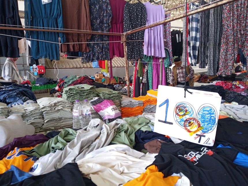 Muratpaşa ilçesi Cumhuriyet Mahallesi’nde kurulan ve uygun fiyatlı ürünlerden dolayı vatandaşlar tarafından ÇAR-PA (Çarşamba Pazarı) olarak adlandırılan açık hava mağazası büyük ilgi görüyor. Yeni yılın son günü, Antalyalılar mevsimlik giyecek ihtiyaçlarını bu pazardan karşıladı. Çar-Pa’da ürün fiyatları ise 50, 100 ve 500 TL olarak dikkat çekiyor.