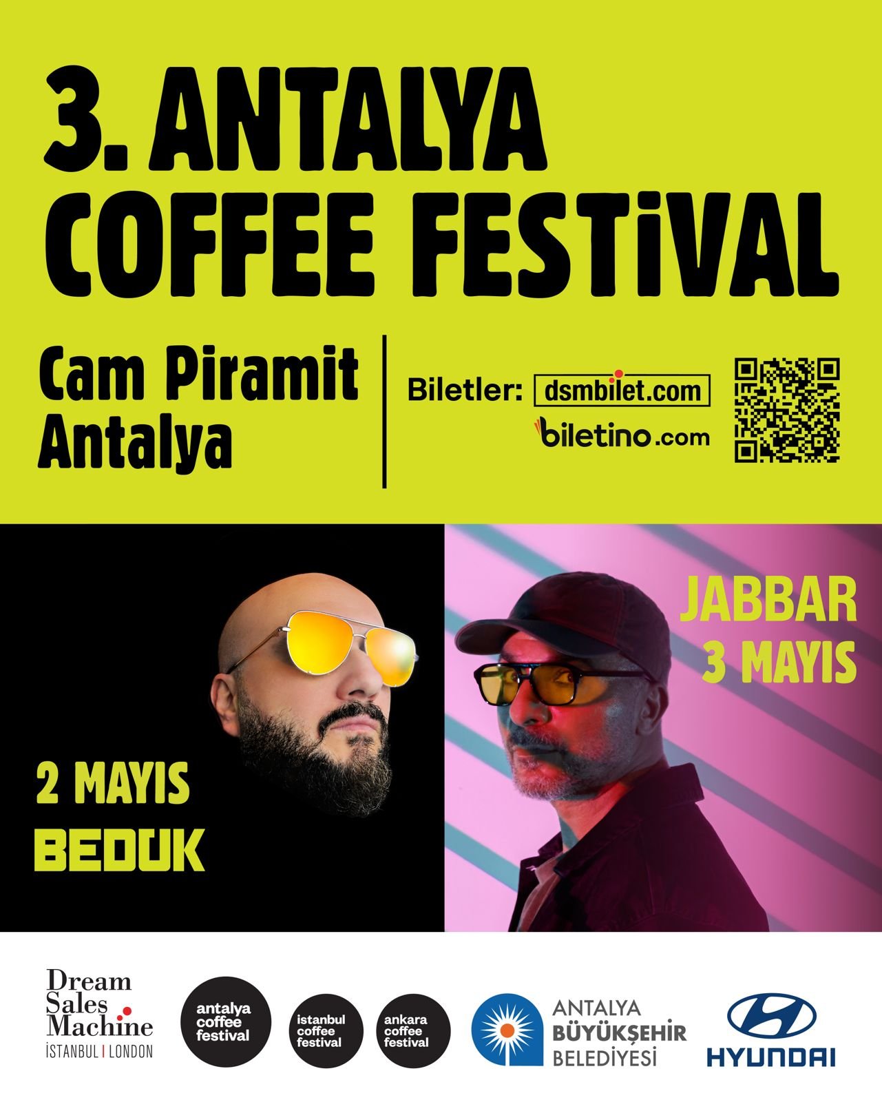 Bu yıl festival sadece kahve deneyimiyle değil, aynı zamanda güçlü bir sosyal sorumluluk hikayesiyle de öne çıkıyor. Katılımcıların festival bileklikleri özel bir kutuda toplanıp fidan bağışına dönüştürülerek, her bilet doğaya bir katkı sunmuş olacak. Sahnede ise Bedük ve Jabbar festival enerjisini yükseltecek. Kahve sektörünün en yenilikçi markalarını, yaratıcı baristaları, üreticileri ve ekipman firmalarını bir araya getiren Antalya Coffee Festival için geri sayım başladı. 1–2–3 Mayıs’ta Cam Piramit’te gerçekleşecek festival, 100’ün üzerinde marka katılımıyla Türkiye’nin en kapsamlı kahve buluşmalarından biri olmayı sürdürüyor.