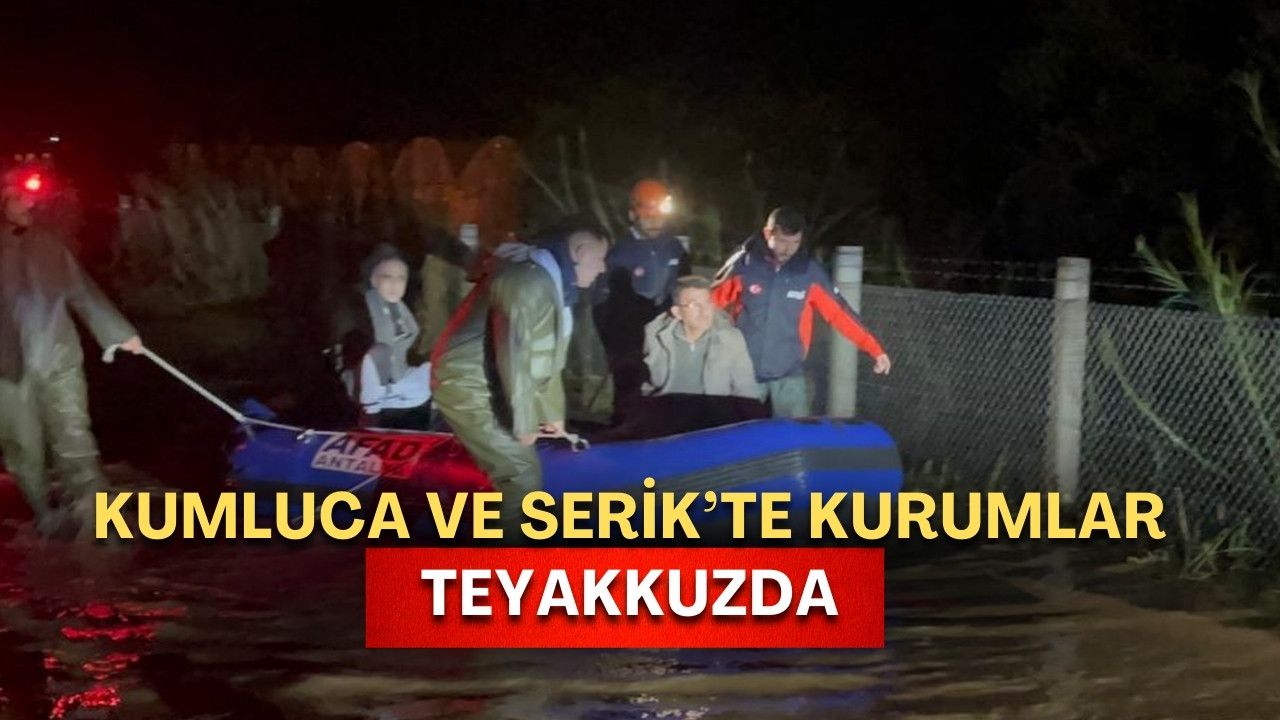Çetin, selden etkilenen vatandaşlara geçmiş olsun dileklerini ileterek, “Kumluca ve Serik ilçelerimizde etkili olan şiddetli yağışların ardından meydana gelen sel ve su baskınlarından etkilenen hemşehrilerimize geçmiş olsun dileklerimi iletiyorum. Devletimiz kurum ve kuruluşlarıyla sahada çalışmalarını sürdürüyor. Rabbim afetinden korusun” ifadelerini kullandı. Bölgede AFAD, belediye ekipleri ve diğer ilgili kurumlar, su tahliye ve hasar tespit çalışmalarına devam ederken, vatandaşların dikkatli ve tedbirli olmaları yönünde uyarılar yapıldı. Yetkililer, gelişmelerin yakından takip edildiğini belirtti.