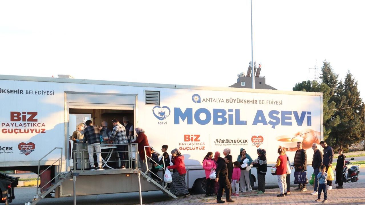 Büyükşehir Belediyesi Sosyal Hizmetler Daire Başkanlığı bünyesinde faaliyet gösteren Mobil Aşevi, her akşam farklı bir mahallede vatandaşlarla buluşacak. Mobil Aşevi 25 Şubat Çarşamba Barış Mahallesi Aydınlar Camii önü, 26 Şubat Perşembe Habipler Pazar yeri, 27 Şubat Cuma Erenköy Pazar yeri, 28 Şubat Cumartesi Varsak Karşıyaka Mahallesi muhtarlık yanı, 1 Mart Pazar Ünsal Mahallesi Pazar yerinde iftar öncesi yemek ikramı gerçekleştirilecektir. Saat 18.00 itibarıyla başlayacak dağıtımlarda, günlük 1000 kişilik dört çeşit sıcak yemek ikram edilecek.