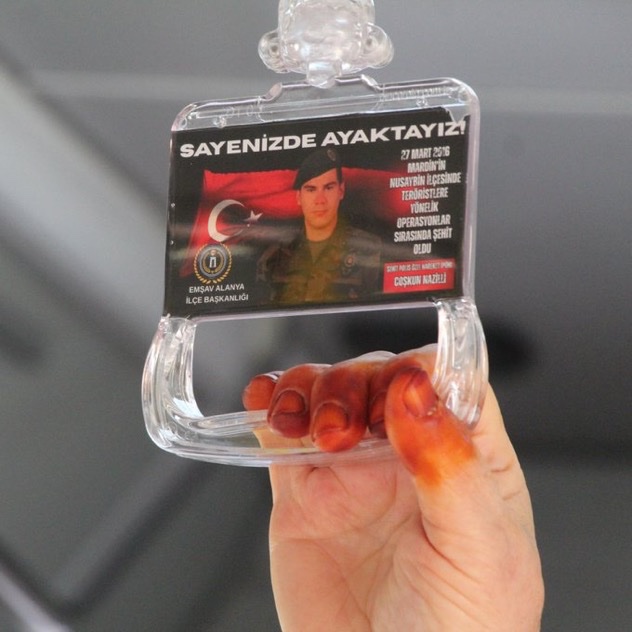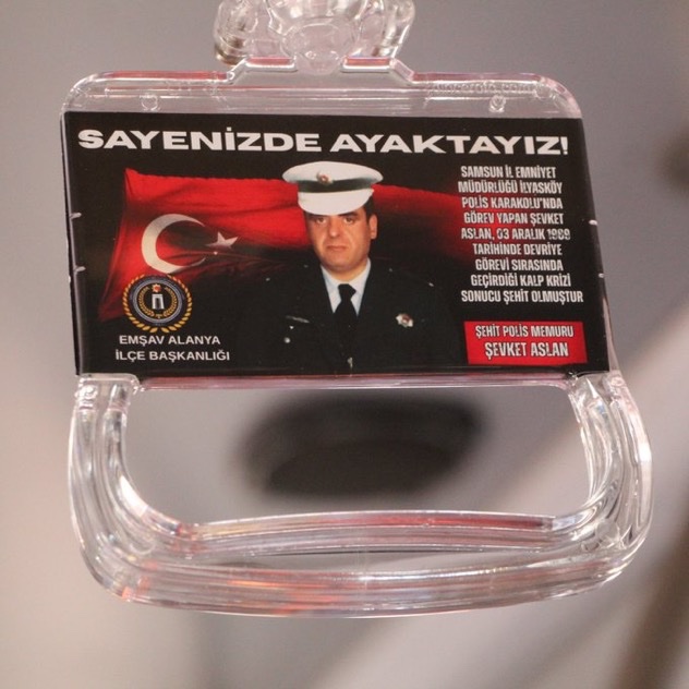 Antalya’da gerçekleştirilen anlamlı bir proje kapsamında, şehir içi halk otobüslerinin yolcuların tutunduğu askılarına şehit polis ve askerlerin isimleri yerleştirildi. Bu duyarlı çalışma ile her bir tutacak, bir şehidin hatırasına adanarak, onlara duyulan minnet ve saygıyı gözler önüne serdi. Projenin ana temasını, “Sayenizde ayaktayız!” mesajı oluşturdu.