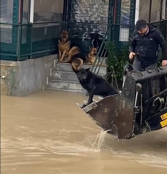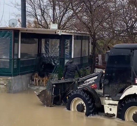 Bölgeye ulaşan ekipler, su seviyesinin yüksekliği nedeniyle standart araçlarla müdahale edemeyince iş makineleri devreye sokuldu. Bir kepçe yardımıyla ulaşılan noktada, korku içinde kurtarılmayı bekleyen köpekler tek tek güvenli alanlara taşındı. Ekiplerin titiz çalışması sonucu can dostlar sel sularından sağ salim çıkarılarak güvenli bir bölgeye tahliye edildi. Kurtarma operasyonu mahalle sakinlerine derin bir nefes aldırdı.