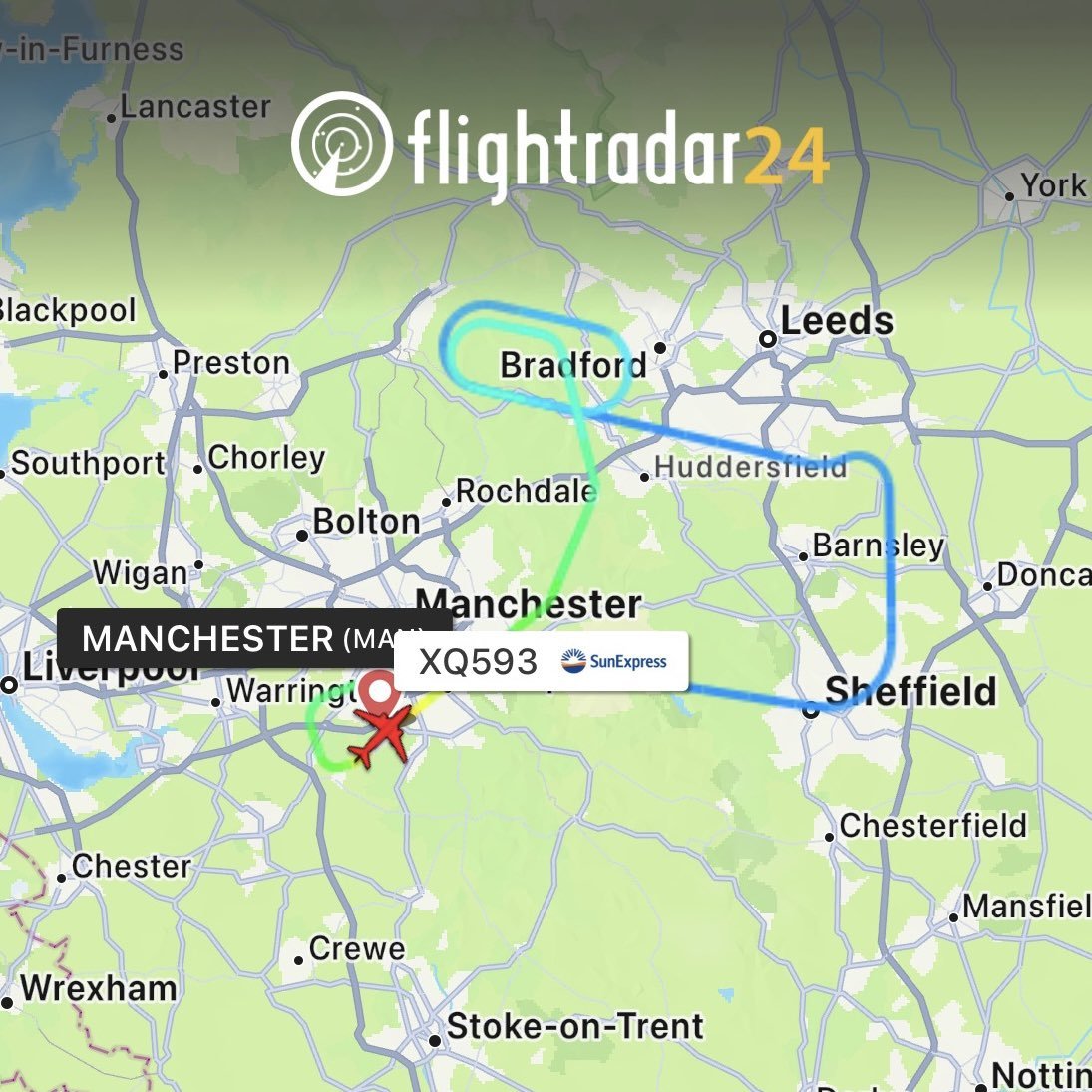SunExpress hava yolu şirketine ait Manchester-Antalya seferini yapan yolcu uçağı, kalkıştan kısa bir süre sonra uçakta bulunan bir yolcunun rahatsızlanması üzerine 7700 acil durum kodu vererek kalkış yaptığı havalimanına iniş yaptı.