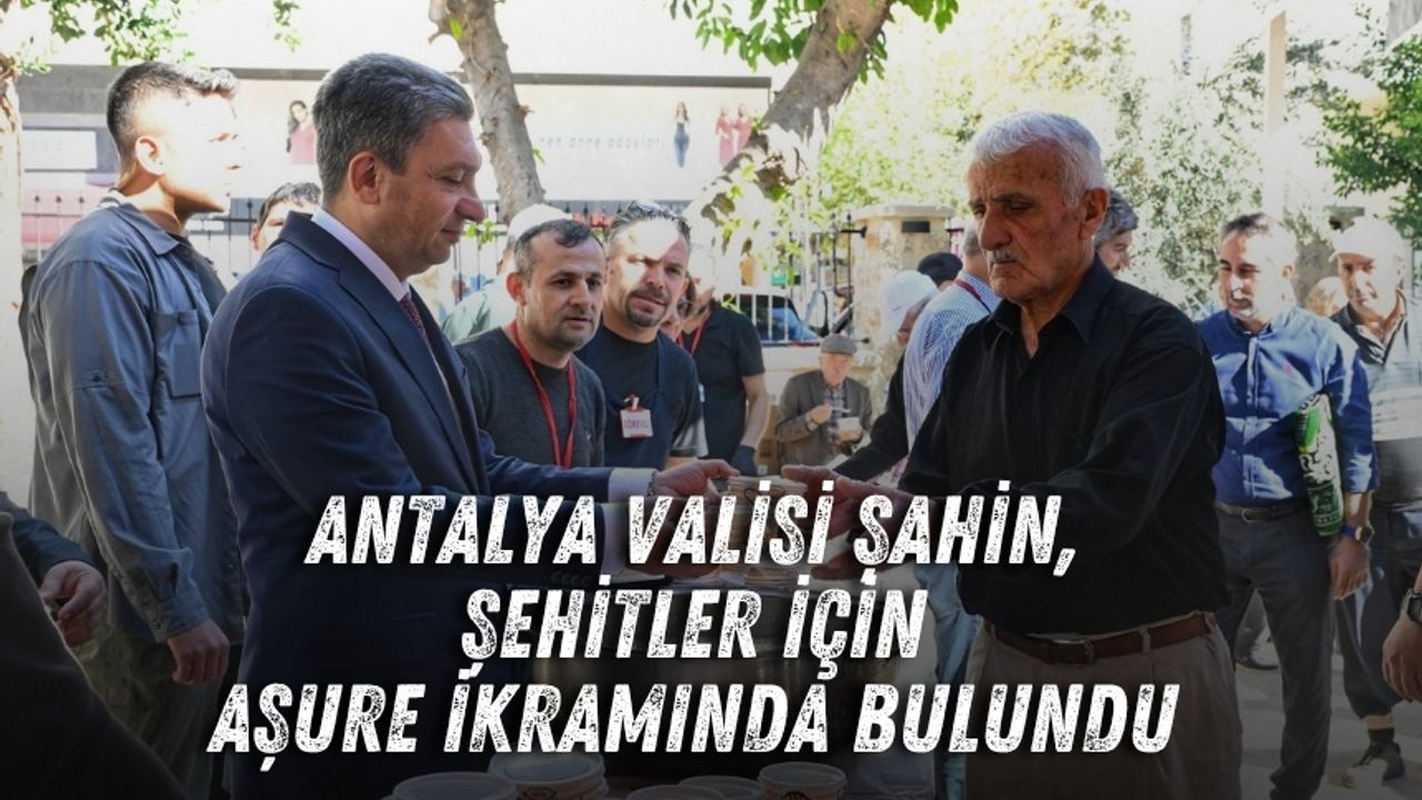 Antalya'da şehitler için anlamlı bir dayanışma etkinliği gerçekleştirildi. Antalya Valisi Hulusi Şahin, Müsellim Camii'nde kılınan cuma namazının ardından, kentteki hayırsever esnaflar tarafından düzenlenen aşure ikram programına katılarak vatandaşlarla bir araya geldi. Etkinlik, art arda yaşanan iki ayrı uçak kazasında şehit düzen kahramanlar için düzenlendi.