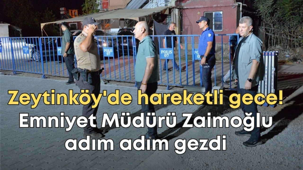 Antalya İl Emniyet Müdürü Dr. Sabit Akın Zaimoğlu, Muratpaşa ilçesinde Zeytinköy olarak bilinen Yeşildere Mahallesi’nde vatandaşlarla bir araya gelerek sorun ve taleplerini dinledi. Zaimoğlu, görev başındaki polis ekiplerini de denetleyerek çalışmalar hakkında bilgi aldı. Geçtiğimiz günlerde bir açıklama yapan Zaimoğlu, “Zeytinköy, Antalya'nın en güvenli bölgesi olacak. Nerede sıkıntı varsa ben orada olacağım.” demişti.