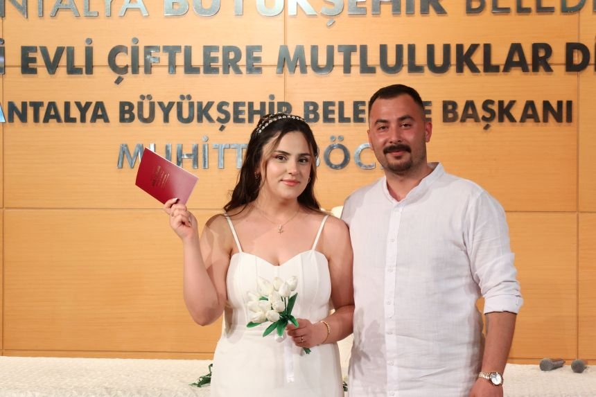 Antalya’da evliliklerini özel bir tarihte gerçekleştirmek isteyen çiftler “05.05.2025” tarihini seçti. Aylar öncesinden bu özel tarihte hayatlarını birleştirmek için nikâh randevusu alan 25 çift Antalya Büyükşehir Belediyesi nikâh salonunda ‘Evet’ dedi.