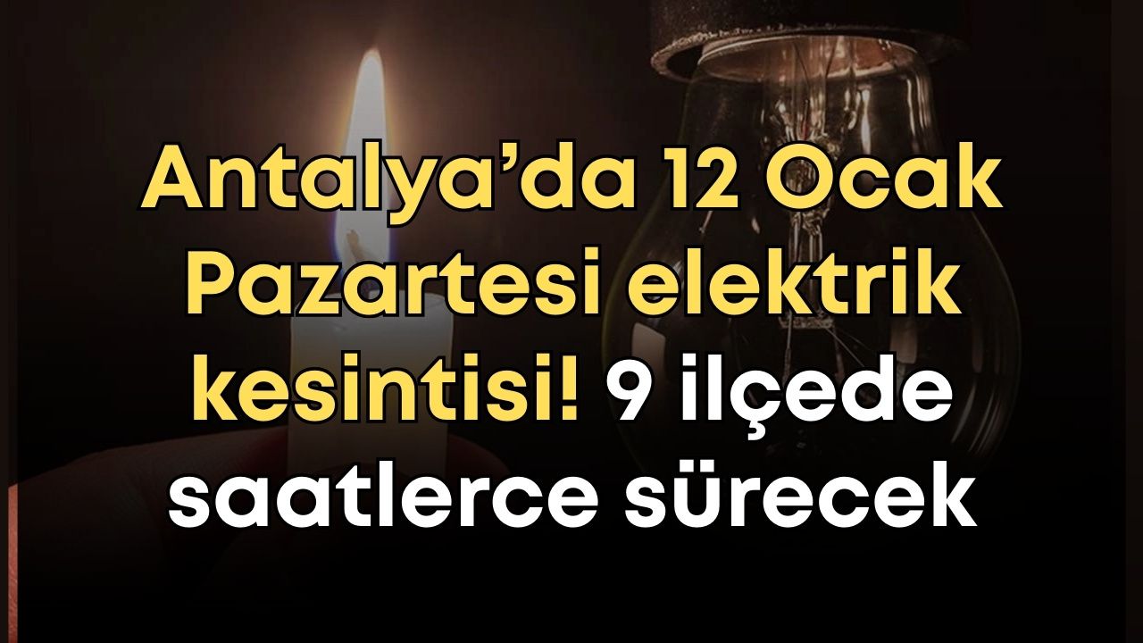 Akdeniz Elektrik Dağıtım AŞ (AEDAŞ), Antalya merkez dahil 8 ilçesinde bakım ve onarım çalışmaları nedeniyle elektrik kesintileri yapılacağını duyurdu. İşte 12 Ocak Pazartesi günü elektrik kesintisinin yaşanacağı ilçeler…