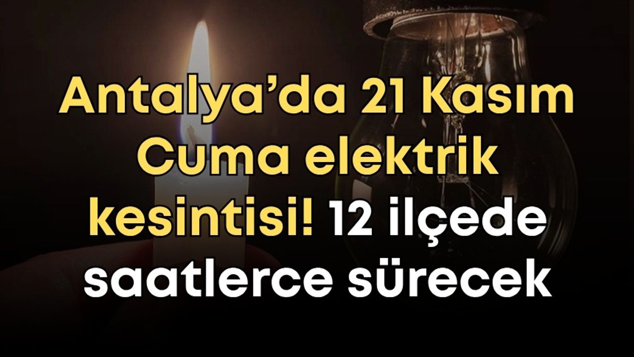 Akdeniz Elektrik Dağıtım AŞ (AEDAŞ), Antalya merkez dahil 12 ilçesinde bakım ve onarım çalışmaları nedeniyle elektrik kesintileri yapılacağını duyurdu. İşte 21 Kasım Cuma günü elektrik kesintisinin yaşanacağı ilçeler…