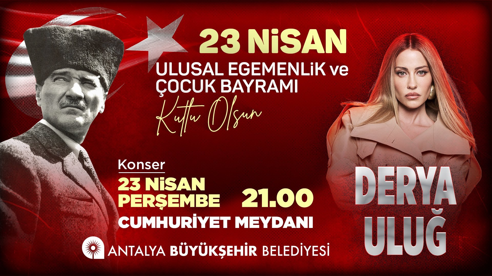 Gecenin merakla beklenen ismi ise ünlü sanatçı Derya Uluğ olacak. Saat 21.00’de sahneye çıkacak olan Derya Uluğ, sevilen şarkılarını Antalyalılar için seslendirecek. Antalya Büyükşehir Belediyesi tarafından organize edilen bu ücretsiz konserle, milli egemenlik gururu müzikle birleşecek. Başkan Vekili Büşra Özdemir, bu anlamlı günde birlik ve beraberlik vurgusu yaparak etkinliklerin bayramın şanına yakışır şekilde planlandığını ifade etti.