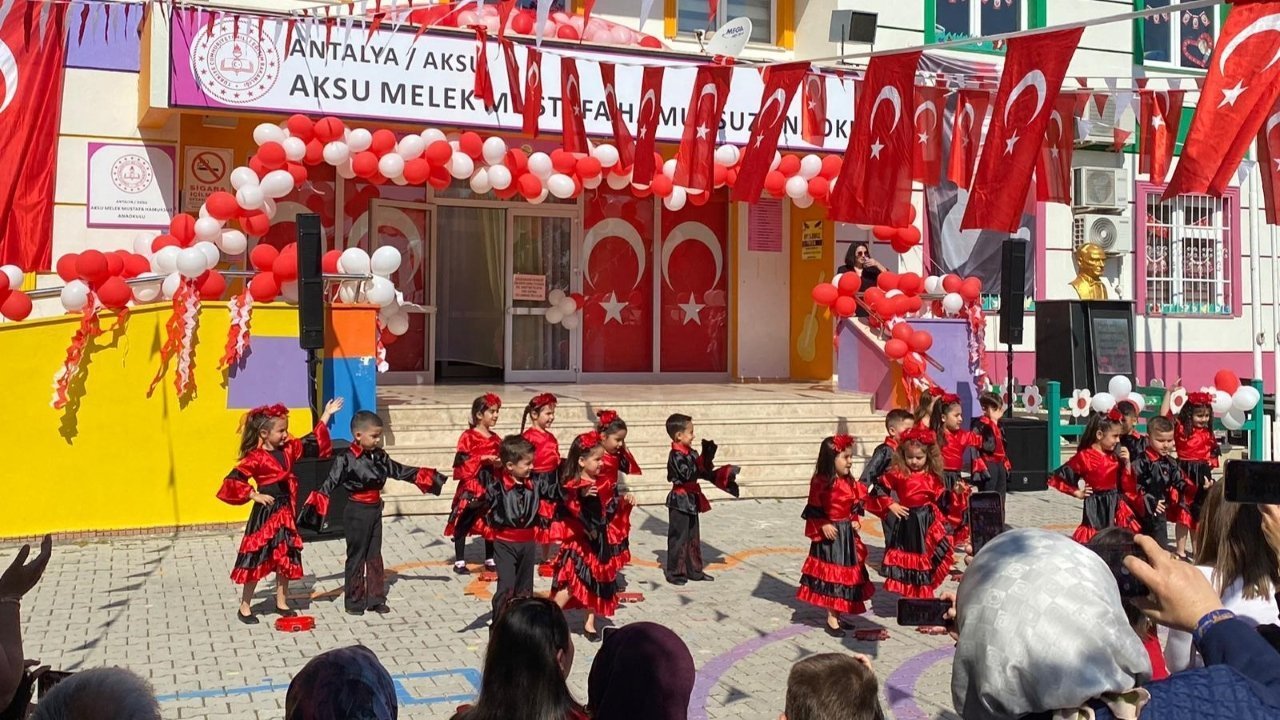 Antalya’nın Aksu ilçesinde bulunan Aksu Melek Mustafa Hamursuz Anaokulu’nda 23 Nisan Ulusal Egemenlik ve Çocuk Bayramı kutlaması saygı duruşu ve İstiklal Marşı’nın okunmasıyla başladı. Ardından Okul Müdürü Çiğdem Akdemir günün anlam ve önemine ilişkin konuşma yaptı. Akdemir, 23 Nisan’ın çocuklara armağan edilen en özel bayramlardan biri olduğunu belirterek tüm öğrencilerin bayramını kutladı.