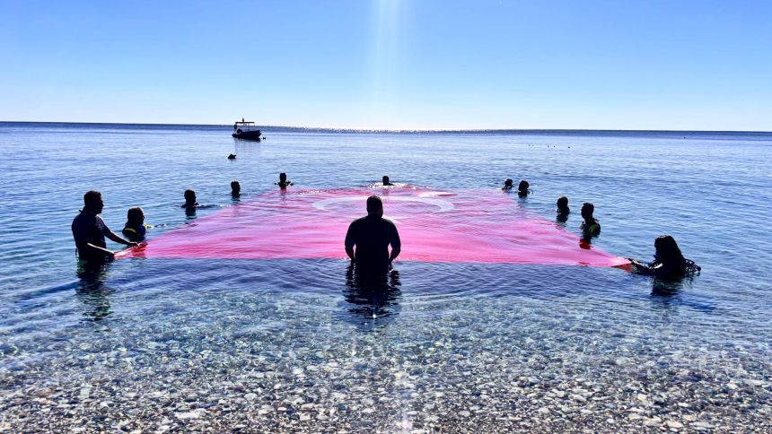 Antalya'da Cumhuriyet'in 102'nci yılı kutlamaları kapsamında deniz altında ve üstünde Türk bayrağı açıldı. Kutlamalar, dev bayrağı dalgalandırarak karada da devam etti.