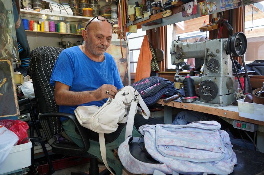 Çanta imalatına çırak olarak adım atan Bayram Ali Şimşek, 56 yıldır mesleğini sürdürüyor. İmalattan yetiştiğini, yıllar boyunca atölye işletip tamir işine yöneldiğini anlatan Şimşek, "12 yaşımda bu işe başladım. 56 senedir bu işi yapıyorum. Şu anda 100 metrekarelik imalathanem boş duruyor, çünkü iş yok. Tamir olmazsa sabahtan akşama otururuz. Belediye sağ olsun bize 6 metrekarelik dükkan verdi, burada ayakta kalmaya çalışıyoruz" diye konuştu.