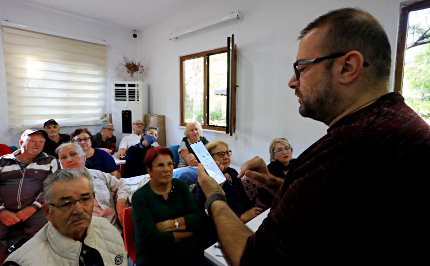 Antalya'da 60 yaş üstü bireylere "Akıllı Telefon Kullanımı Eğitimi" verilerek, dijital dünyaya katılmaları sağlanıyor. Bireyler, akıllı telefonun temel kullanımı, mesajlaşma, görüntülü konuşma, sosyal medya kullanımı, mobil bankacılık ve e-Devlet işlemlerinin yanı sıra güvenlik konularında da eğitim alıyor.