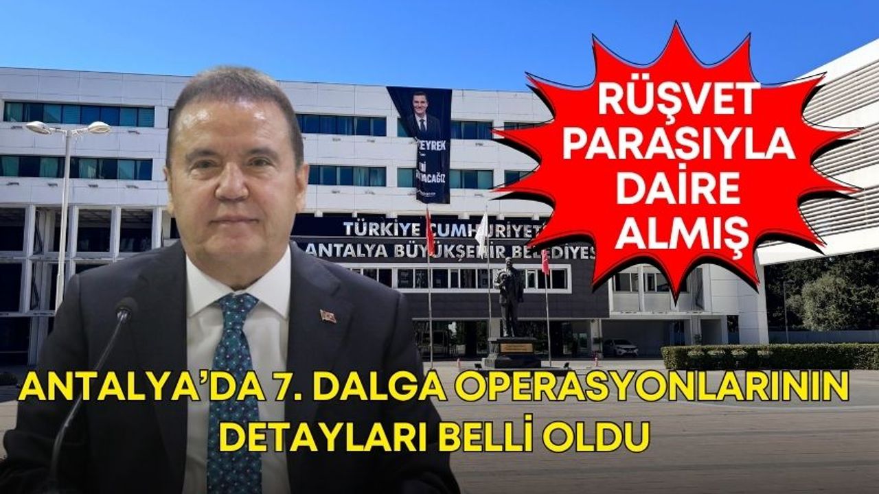 Antalya bir kez daha güne operasyonla uyandı. Antalya Cumhuriyet Başsavcılığı tarafından 5 Temmuz 2025 tarihinde başlayan rüşvet ve yolsuzluk operasyonlarının 7. dalgası sabah saatlerinde gerçekleşti. Operasyonlarda 6 kişi gözaltına alınırken gerçekleşen operasyonun ise detayları belli oldu. Muhittin Böcek'in rüşvet parasıyla Büyükşehir Belediyesi özel kalem çalışanı Melek K.'ye, daire aldığı ileri sürüldü.
