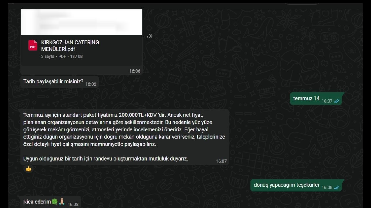 400 KİŞİLİK DÜĞÜNÜN BEDELİ 200 BİN + KDV