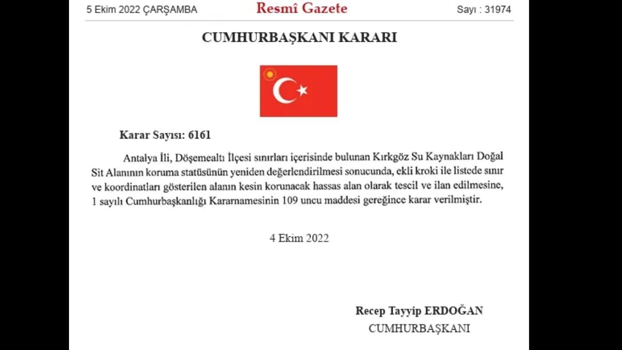 4 Ekim 2022 tarihli Cumhurbaşkanı Kararı ile Kırkgöz su kaynaklarının doğal sit statüsü güncellenerek Termessos kuyularına kadar olan bölge “Kesin Korunacak Hassas Alan” ilan edildi. Göl ve sulak alan bölümü ise “Nitelikli Doğal Koruma Alanı” olarak tescillendi. Su kaynağının yüzeye çıktığı alan tel örgüyle çevrilerek insan girişine kapatıldı. Ayrıca bölgeye yerleştirilen uyarı levhalarında, 2872 sayılı Çevre Kanunu gereğince su kaynağını kirletenlere cezai yaptırım uygulanacağı vurgulandı. Koruma altındaki su kaynağının hemen yanı başındaki tarihi handa yoğun organizasyonlar yapılması ise tartışmalarını beraberinde getirdi.