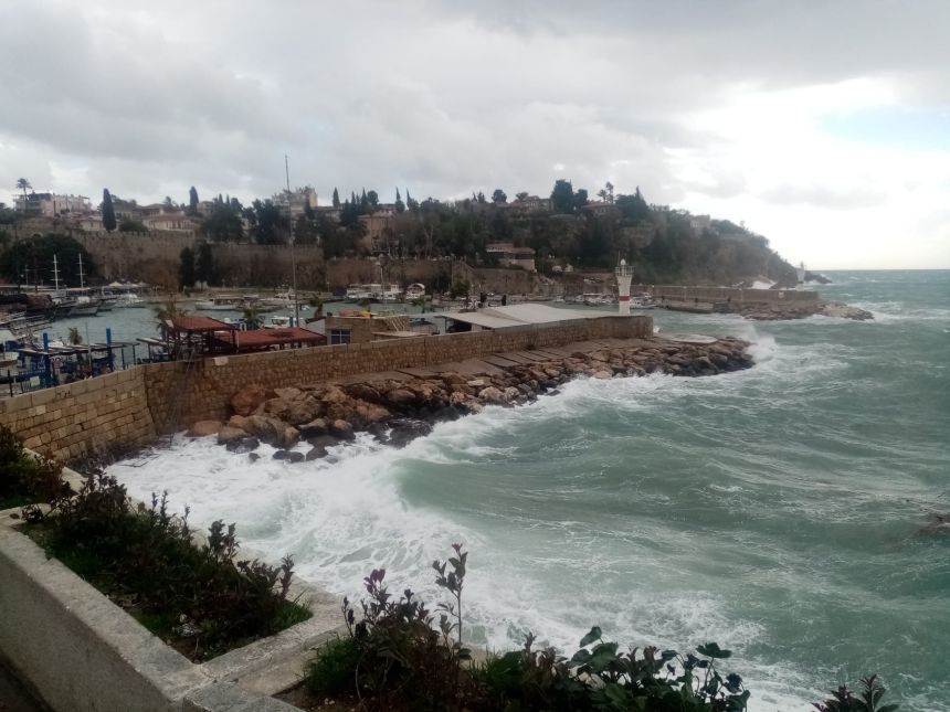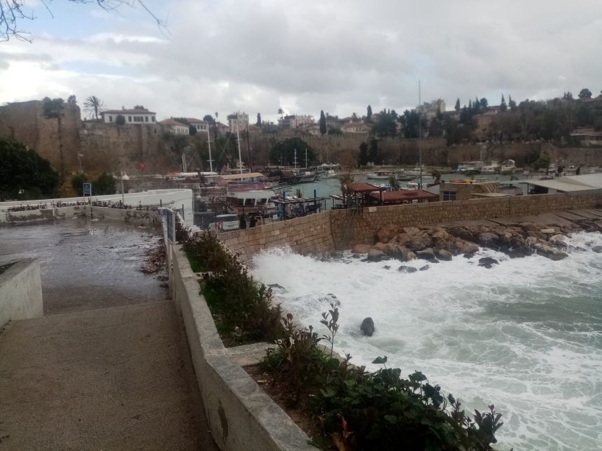 Antalyalılar güne kuvvetli rüzgar ile uyandı. Saatteki hızı 26 kilometreye ulaşan lodos nedeniyle tarihi Kaleiçi Yat Limanı'nda bulunan turistik yatlar tura çıkmadı.