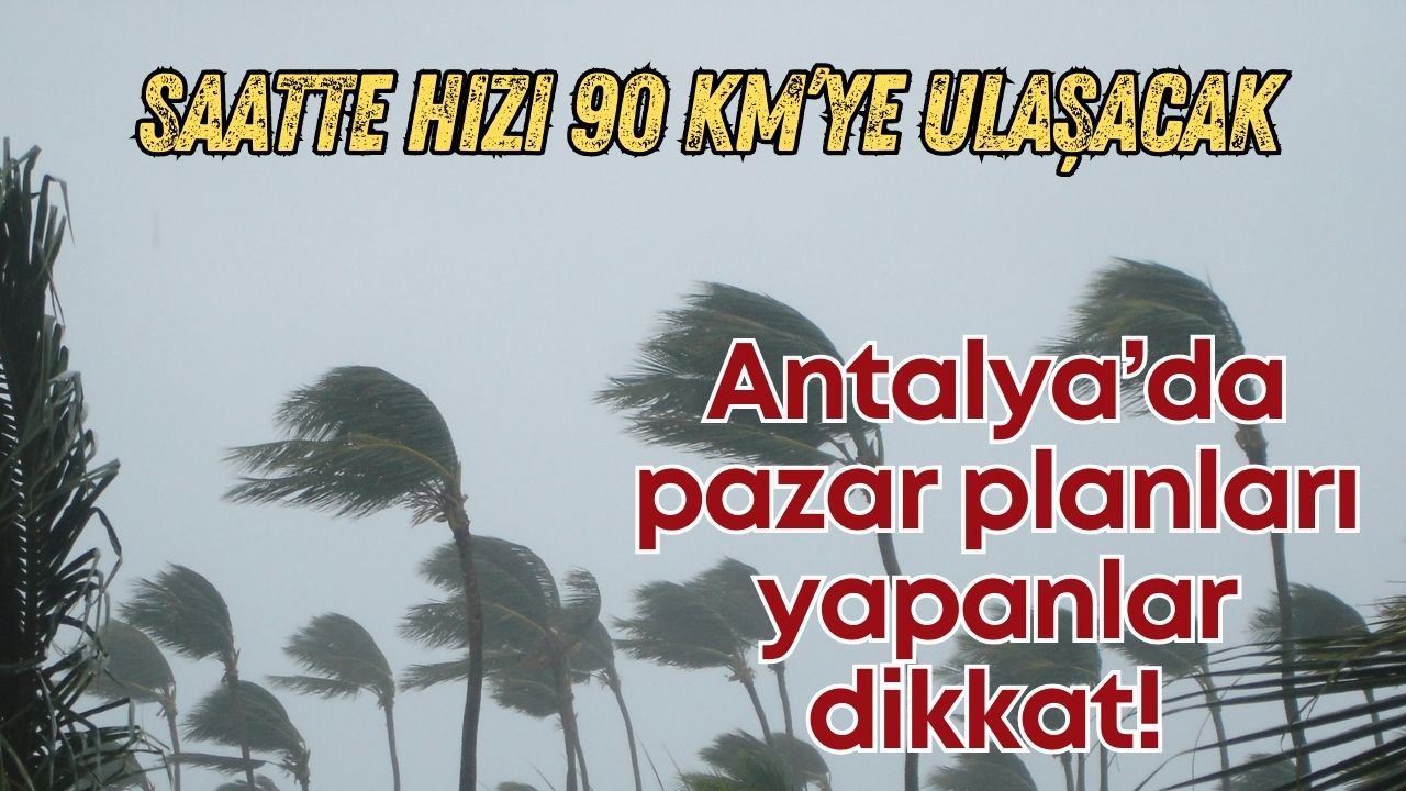 Antalya’da meteorolojiden son dakika fırtına uyarısı geldi. Yapılan son değerlendirmelere göre bu gece saatlerinden itibaren kent genelinde güney yönlerden kuvvetli rüzgâr ve fırtınanın etkili olması bekleniyor.