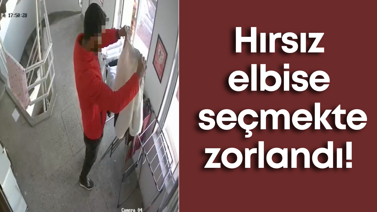 Kepez ilçesi Şafak mahallesinde kaydedilen görüntülerde kimliği belirsiz bir kişi gözüne apartman içerisindeki askıdaki elbiseleri kestirdi. Kapısı açık daireye giren genç, önce etrafı kolaçan etti. Daha sonra ise elbise askısında elbiseleri inceledi. Bir süre elbiseler arasında seçim yapmakta zorlanan genç daha sonra beyaz bir kazak alarak binadan çıktı.