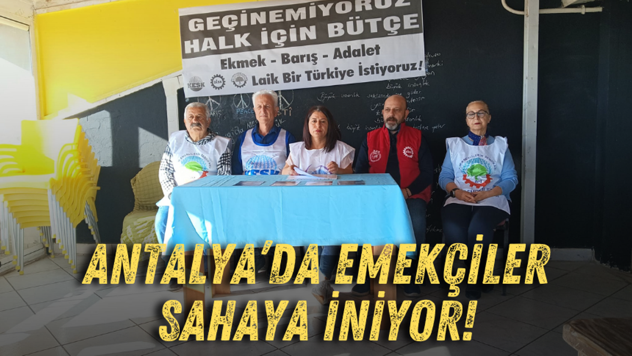 Kamu Emekçileri Sendikaları Konfederasyonu (KESK), Devrimci İşçi Sendikaları Konfederasyonu (DİSK) ve Türkiye Emekliler Sendikası ortaklığında düzenlenecek yürüyüş saat Pazar günü 13.00’te Muratpaşa ilçesinde bulunan Aydın Kanza Parkı’ndan başlayacak. Konu ile alakalı Sağlık Emekçileri Sendikası Antalya Şubesi de bir açıklama yaptı. Açıklamada, “Halk için bütçe, demokratik Türkiye! Geçinemiyoruz diyen bütün kesimleri; sömürüye, yağmaya, yoksullaştırılmaya, bu talan bütçesine karşı emeğin hakları için alanlarda omuz omuza vermeye çağırıyoruz” ifadelerine yer verildi.