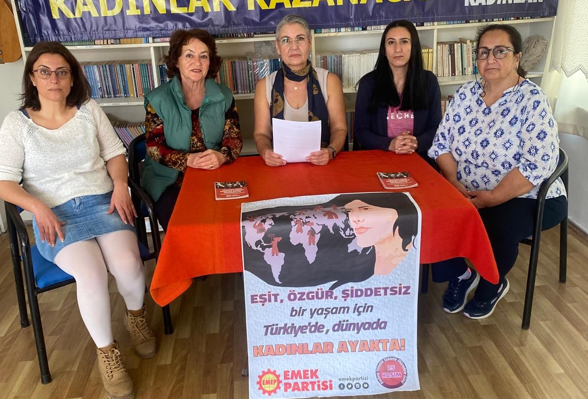 Antalya'daki EMEP’li kadınlar, hükümetin kadına yönelik şiddetle mücadeledeki etkisizliğini ve cinsiyetçi söylemlerinin şiddeti beslediğini belirti. EMEP’li kadınlar, “İktidarın İstanbul Sözleşmesi'nden çekilmesi, 6284 sayılı yasayı uygulamaması, haksız tahrik indirimleri ve aile arabuluculuğu gibi uygulamalar kadın katillerine cesaret vermeye devam ediyor. 2025 yılını 'Aile Yılı' ilan edenler, yüzlerce kadının katledilmesine seyirci kaldı. Antalya'da gündelikçi, tarım işçisi, turizm çalışanı, fabrikada, atölyede çalışan ve üniversitede öğrenci kadınlar olarak sömürüye karşı sesimizi yükseltiyoruz. Düşük ücretlere, güvencesiz çalışmaya, kayıt dışı istihdama karşı çıkıyor her yıl alanlarda sesimizi yükseltiyoruz. İş yerlerinde cinsel tacizin, mobbingin, bize dayatılan sistematik şiddetin, cezasızlığın, iktidarın kadınlara yönelik politikalarıyla doğrudan ilgili olduğunu biliyoruz” dedi.