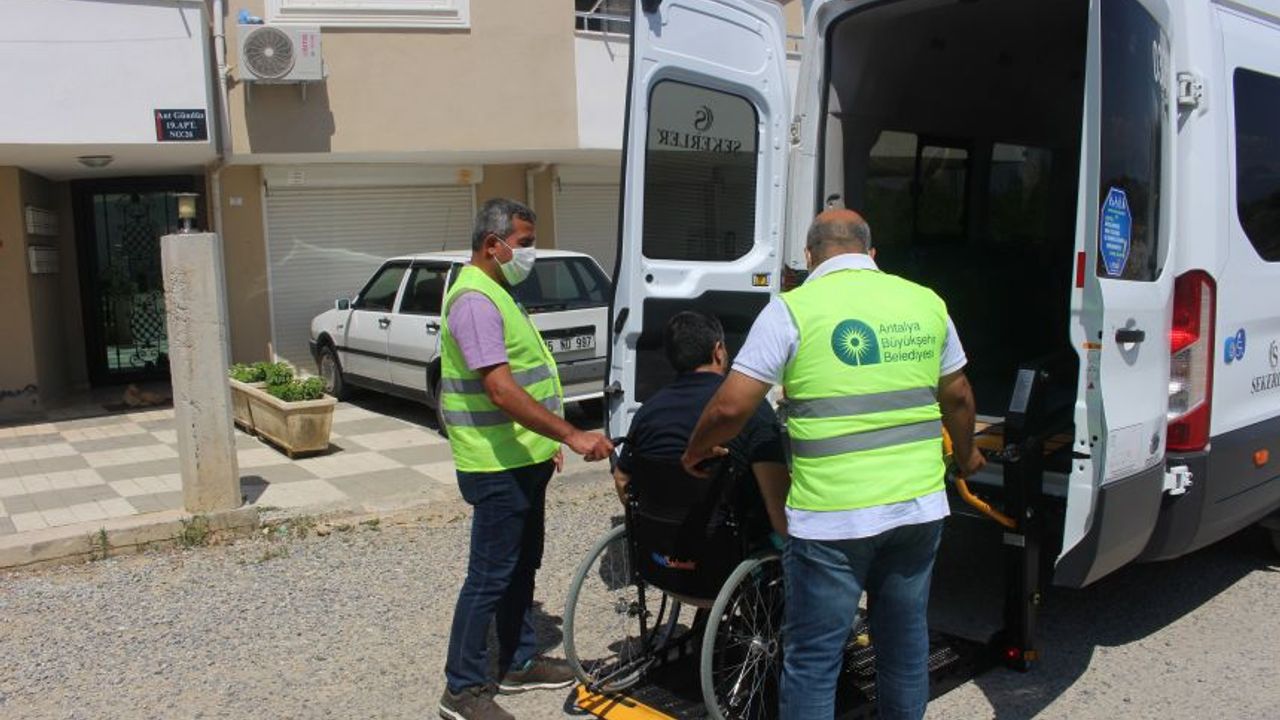 Antalya Büyükşehir Belediyesi, sosyal belediyecilik çalışmaları kapsamında engelli bireylerin kamu kurumlarındaki ve hastane randevuları gibi işlerini kolaylaştırmak amacıyla hayata geçirdiği “Engelsiz Hizmet Aracı” hizmetini sürdürüyor. Büyükşehir Belediyesi Sosyal Hizmetler Dairesi Başkanlığı tarafından yürütülen proje kapsamında, engelli vatandaşlar randevu sistemiyle hizmetten faydalanabiliyor. Vatandaşlar, kendisine refakatçi eşliğinde evlerinden alınarak gitmek istedikleri kamu kurumuna bırakılıyor. İşleri tamamlandığında ise yine aynı araçla evlerine tekrar ulaştırılıyor.