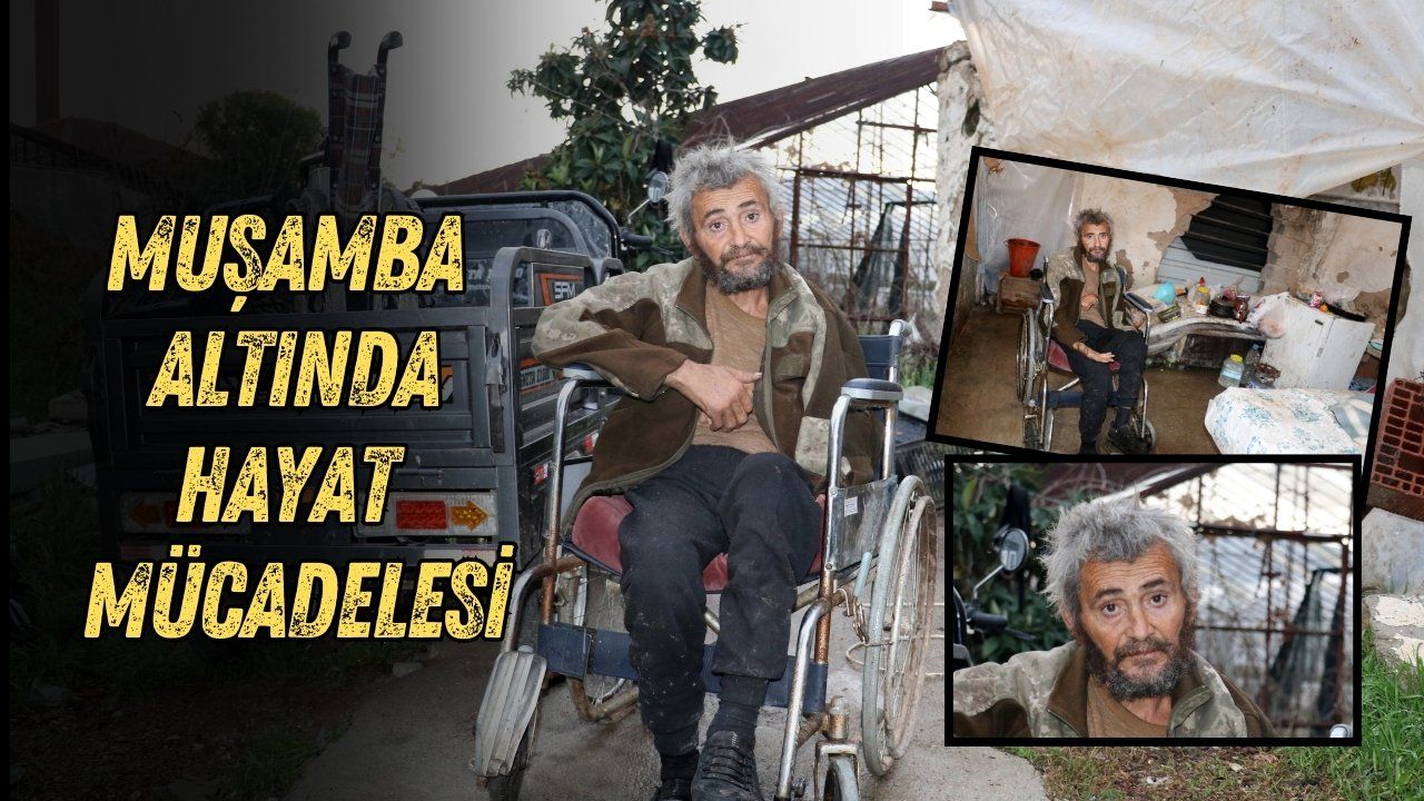 Güzeloluk Mahallesi 1822 Sokak'ta muşambayla çevrili, altyapısı ve hijyen koşulları bulunmayan alanda yaşamını sürdüren sera cam mekan ustası Muhittin Cengiz, 12 yıl önce geçirdiği iş kazasının ardından felç kaldı. Çalıştığı seranın çatısından düştükten sonra beyin kanaması geçiren, sol tarafı tamamen felç kalan ve tekerlekli sandalyeye mahkum olan Cengiz, Bağ-Kur borcu nedeniyle emekli olamadı. Cengiz, maddi imkansızlık yüzünden düzenli tedavi de alamıyor. Yaklaşık 1 yıldır bu koşullarda yaşayan Cengiz, komşularının desteği ve belediyenin sağladığı sınırlı yardımla yaşamını sürdürürken, soğuk havalarda muşambayla çevrili alanda hayatta kalma mücadelesi veriyor.