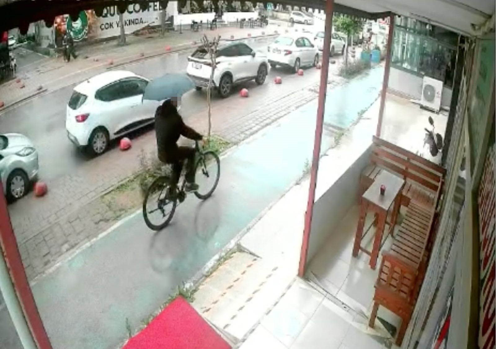 Güvenlik kameralarına yansıyan görüntülerde, şüphelinin bisikletle geçerken motosikleti fark ettiği, bir süre çevreyi kontrol ettikten sonra bisikleti bırakıp motosiklete binerek hızla uzaklaştığı görüldü.