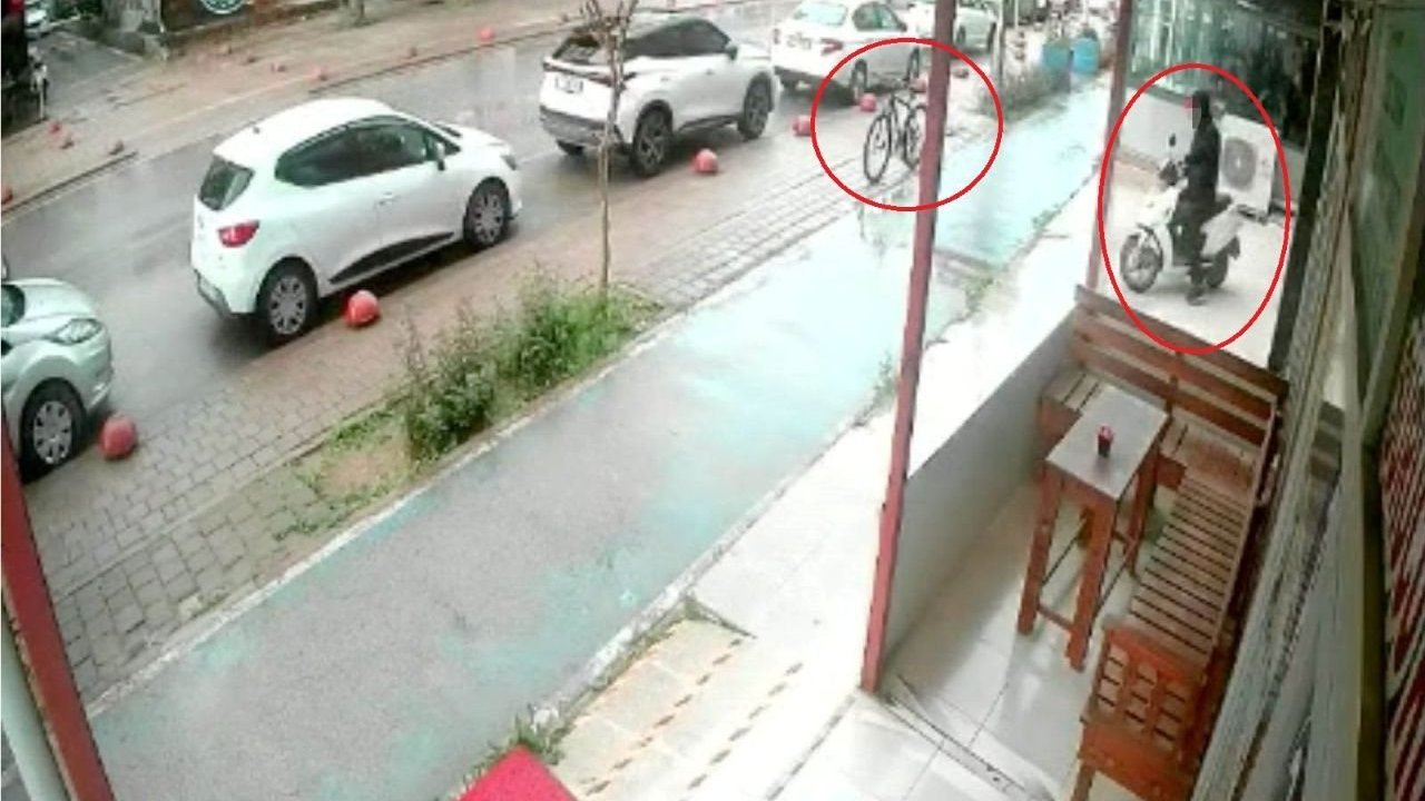 Antalya'nın Serik ilçesinde çaldığı bisikletle seyir halindeyken gözüne park halindeki motosikleti kestiren hırsızlık şüphelisi, çaldığı bisikleti bırakıp yoluna motosikletle devam etti. Hırsızın pes dedirten takası güvenlik kamerasına anbean yansıdı.