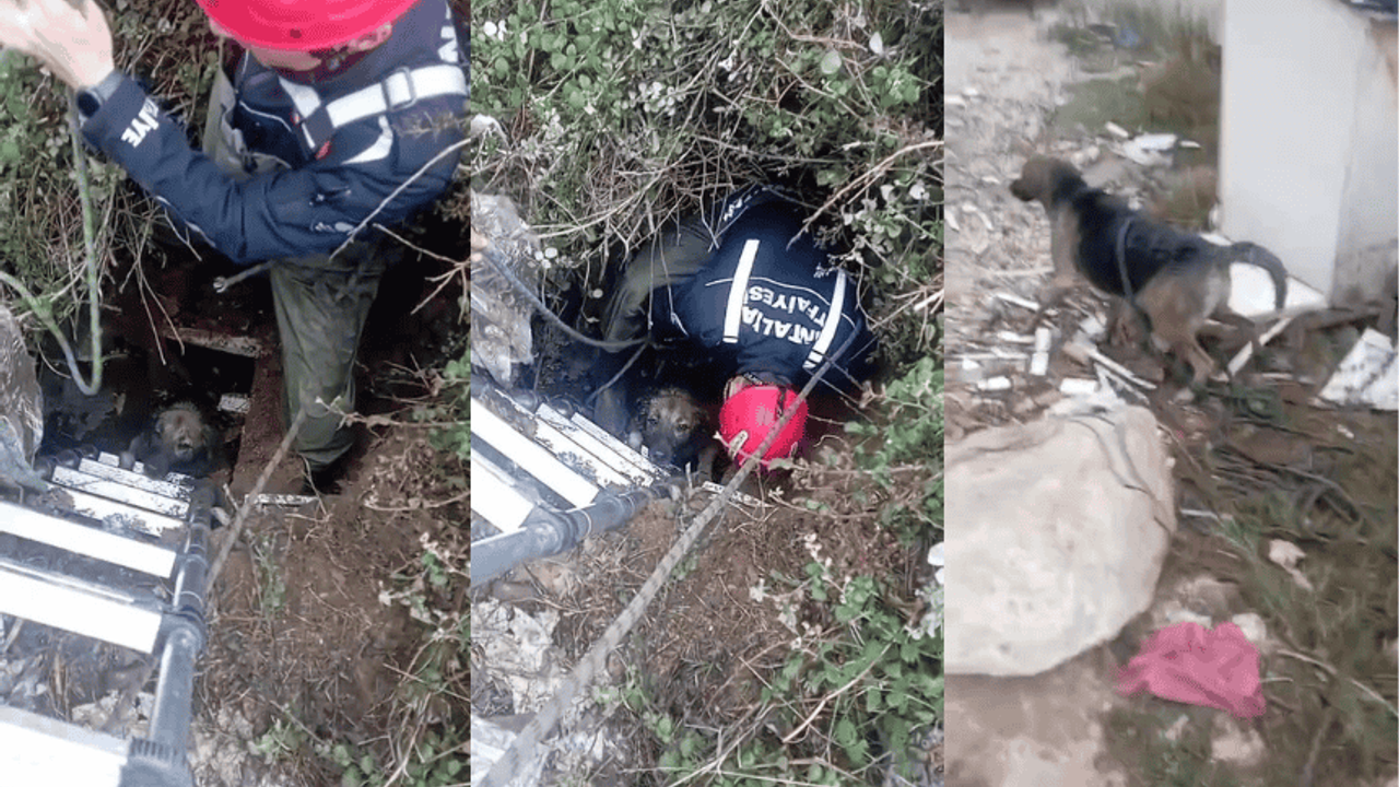 Adrese gelen ekipler gerekli hazırlıkları yaptıktan sonra çukurda mahsur kalan köpeğin yanına indi. Ekipler, güvenli bir alana aldıkları köpeği ipli düzenek yardımıyla çıkardı. Mahsur kaldığı yerden itfaiye ekiplerince kurtarılan köpek daha sonra bölgeden uzaklaştı.