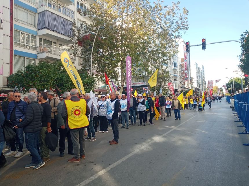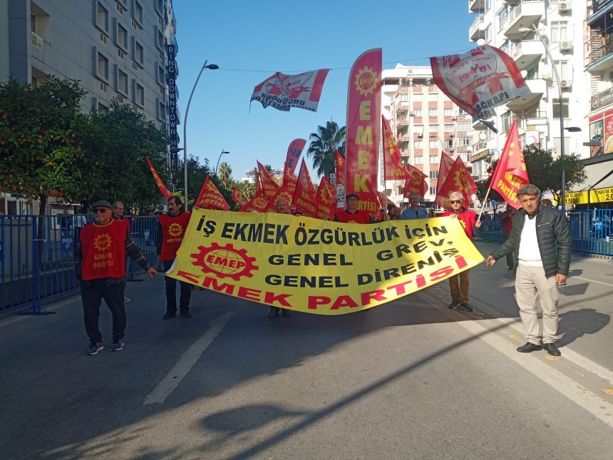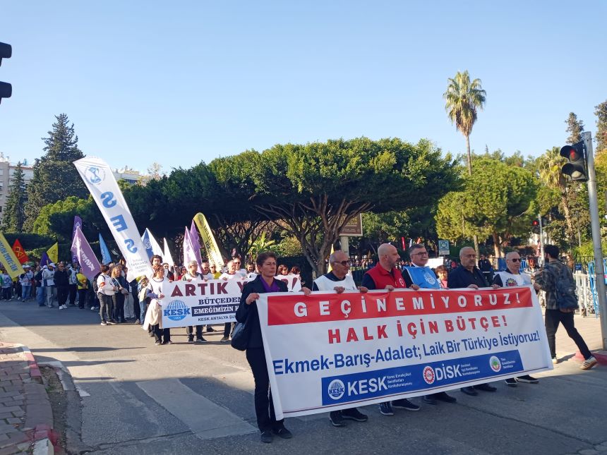 “Halk İçin Bütçe, Demokratik Türkiye” emekçi yürüyüşüne CHP Antalya İl Başkanı Nail Kamacı, CHP Antalya İl Örgütü Devrimci İşçi Sendikaları Konfederasyonu (DİSK) Antalya Şubesi, Kamu Emekçileri Sendikaları Konfederasyonu (KESK), Tüm Emekliler Sendikası, Toplumsal Dayanışma için Avukatlar Derneği (TODAK), İşçi Avukatlar Kurulu, Antalya Barosu, Türkiye İnsan Hakları Derneği (İHD) Antalya Şubesi ve işçi-emekçi sendikaları ile Isparta ve Burdur’dan demokratik kitle örgütleri katıldı.