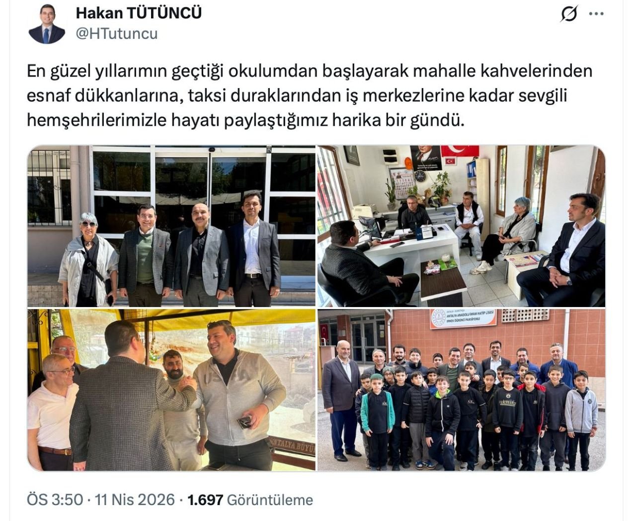 Antalya Körfez Gazetesi muhabiri Ertuğrul Gün'ün haberine göre, Tütüncü’nün sosyal medya hesaplarındaki son paylaşımının 13 Nisan 2026 tarihinde olduğu görüldü. Söz konusu paylaşımda çeşitli okullarda öğrenci ve öğretmenlerle bir araya geldiği anlara yer veren Tütüncü, “Geriye dönüp baktığımızda hayatlarına dokunduğumuz, kalplerine izler bıraktığımız nice gönül var. Değerini şimdi daha çok hissediyoruz.” ifadelerini kullandı. Öncesinde de öğrencilerle buluşmalarına ilişkin paylaşımlar yapan Tütüncü, mahalle ziyaretleri, esnaf buluşmaları ve ev ziyaretleriyle saha çalışmalarını sürdürüyordu.