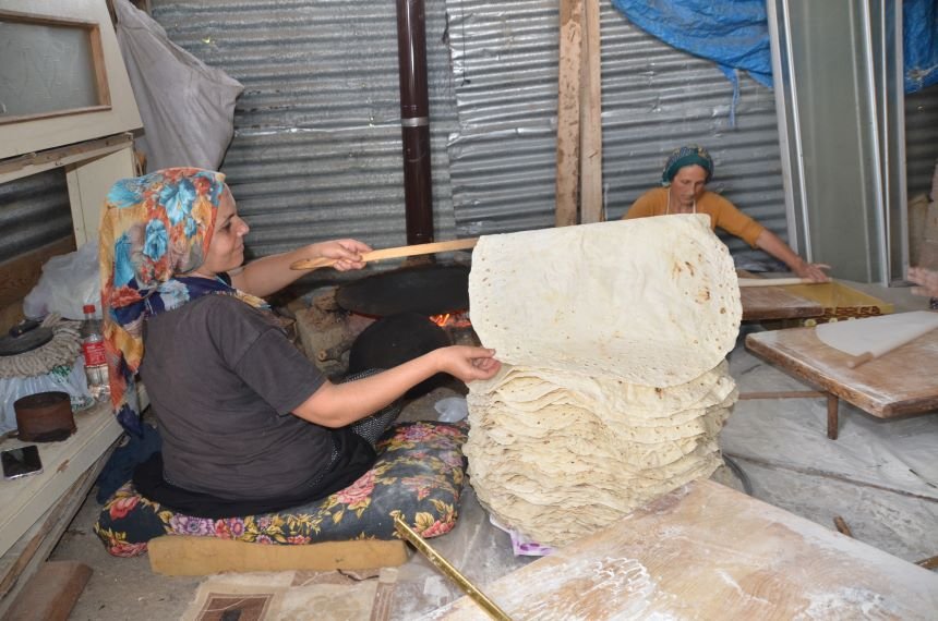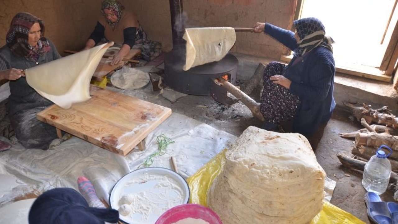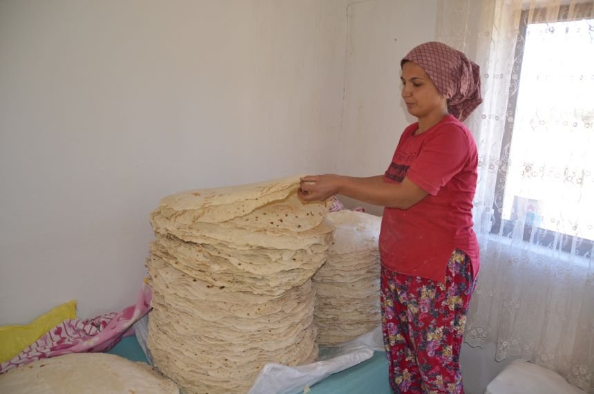 Yufka ekmeğin çok bereketli olduğunu söyleyen Arıcı, “50 kilo gramlık 1 çuval undan yaklaşık olarak 500 yufka ekmek çıkıyor. Biz yufkayı yapmak zorundayız. Hazıra dağlar dayanmaz. Biz yufkaya alışkınız. Allah eksikliğini göstermesin. Çarşıdan ekmek alsak ta o bizim ihtiyacımızı karşılamıyor. İşimiz aşımız yufka yapmaktır” diye konuştu. Ev hanımı Bahriye Çelik, kışlık yufka ekmek yapımına başladıklarını söyledi. Çelik, “Komşularım ile bir birimize ödünç yapıyoruz. Bu iş yalnız olmaz. Bunda ne kadar fazla adam olursa o kadar iyi olur. Günde bir iki çuval undan ekmek yapıyoruz. Sabah erken saatlerde kalkarız. Bir çuval undan yaklaşık 400-450 adet yufka ekmek çıkar. Sonbahar ve ilkbahar olmak üzere yılda iki kez ekmek yapıyoruz. 2 çuval un ile kışı çıkarıyoruz. Biz çocukluğumuzdan bu yana yufka ekmek yaparız. Yufkasız yapamayız” dedi.