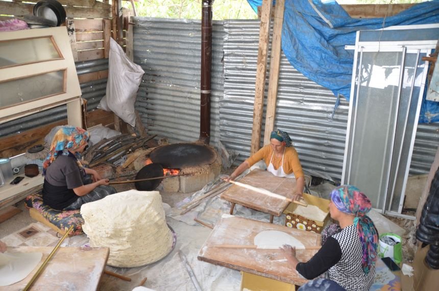 Ev hanımlarından Durdu Kabakcı, komşulara arkadaşları ile birlikte olup sırayla yufka ekmek yaptıklarını anlattı. Kabakcı, “Yufka ekmeği bizim olmazsa olmazlarımızdandır. Biz yılda 2 defa ilkbahar ve sonbaharda yufka ekmek yapıyoruz. Şu anda kışlık ekmeklerimizi yapıyoruz. Özellikle kışın evimizde yufkamızın hazır olması lazım. İstediğimiz saat sulayıp ıslatıyoruz yiyoruz. Yufka köy yerinde olmazsa olmazımızdır. Yufkayı yapmak zorundayız. Köy yerinde imkanlar kısıtlı. O yüzden evimizde hazır bir katığın bulunması lazım. Komşularım ile birlikte birleşip yapıyoruz. Bazen yevmiye usulü, bazen imece usulü bir birimize yardımlaşıp hep birlikte yapıyoruz. Çok az insan yapmaz. Şu anda kışa hazırlık yapıyoruz. Bu ekmekler bahara kadar yeniliyor. Bitince ilkbaharda yeniden yapıyoruz. Aile ekonomisine ise iyi bir katkı sağlıyoruz” şeklinde konuştu.